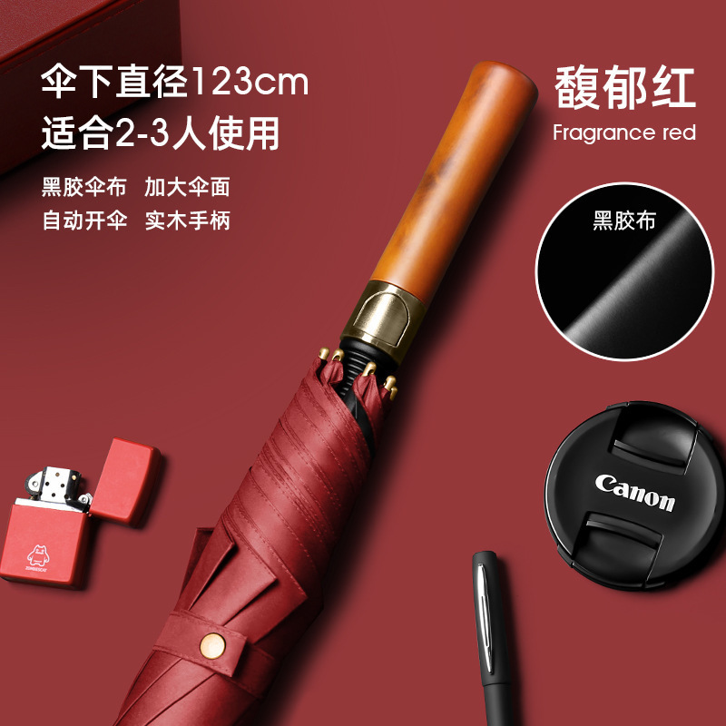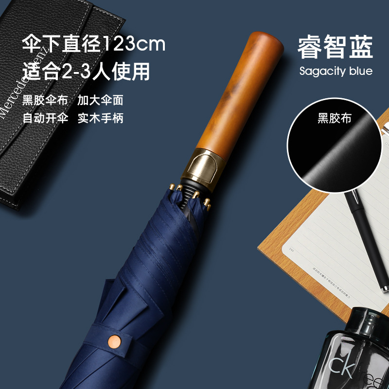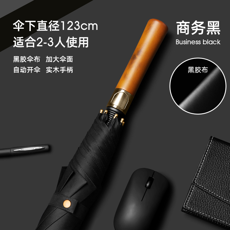 우산 자동 나무 손잡이 골프 우산 증가 더블 스트레이트 우산 인쇄 로고 광고 우산 남성 비즈니스 선물 우산