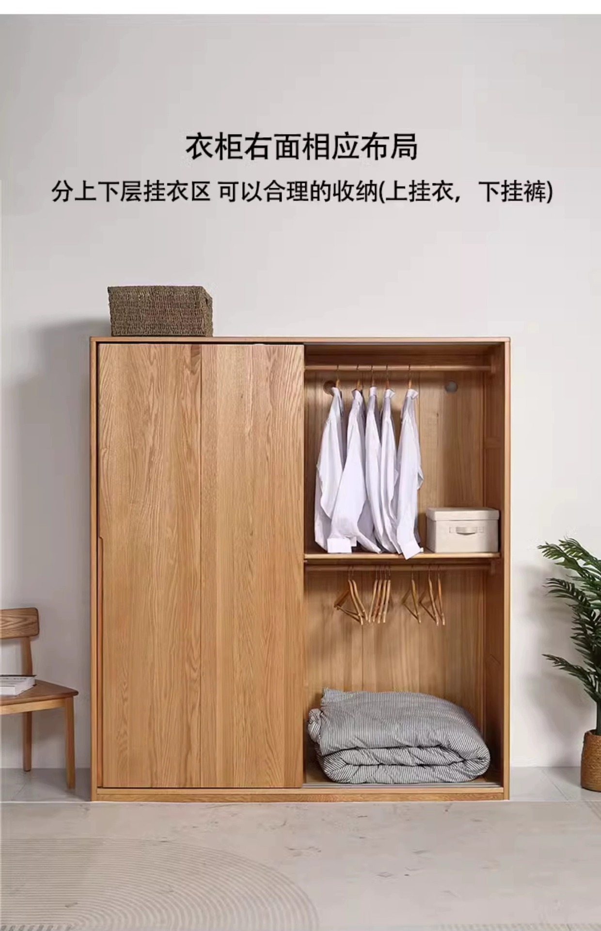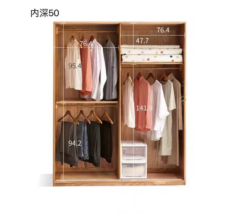 솔리드 우드 옷장 레드 오크 침실 슬라이딩 도어 가정용 슬라이딩 도어 스토리지 캐비닛 옷장 스토리지 캐비닛 북유럽 스타일