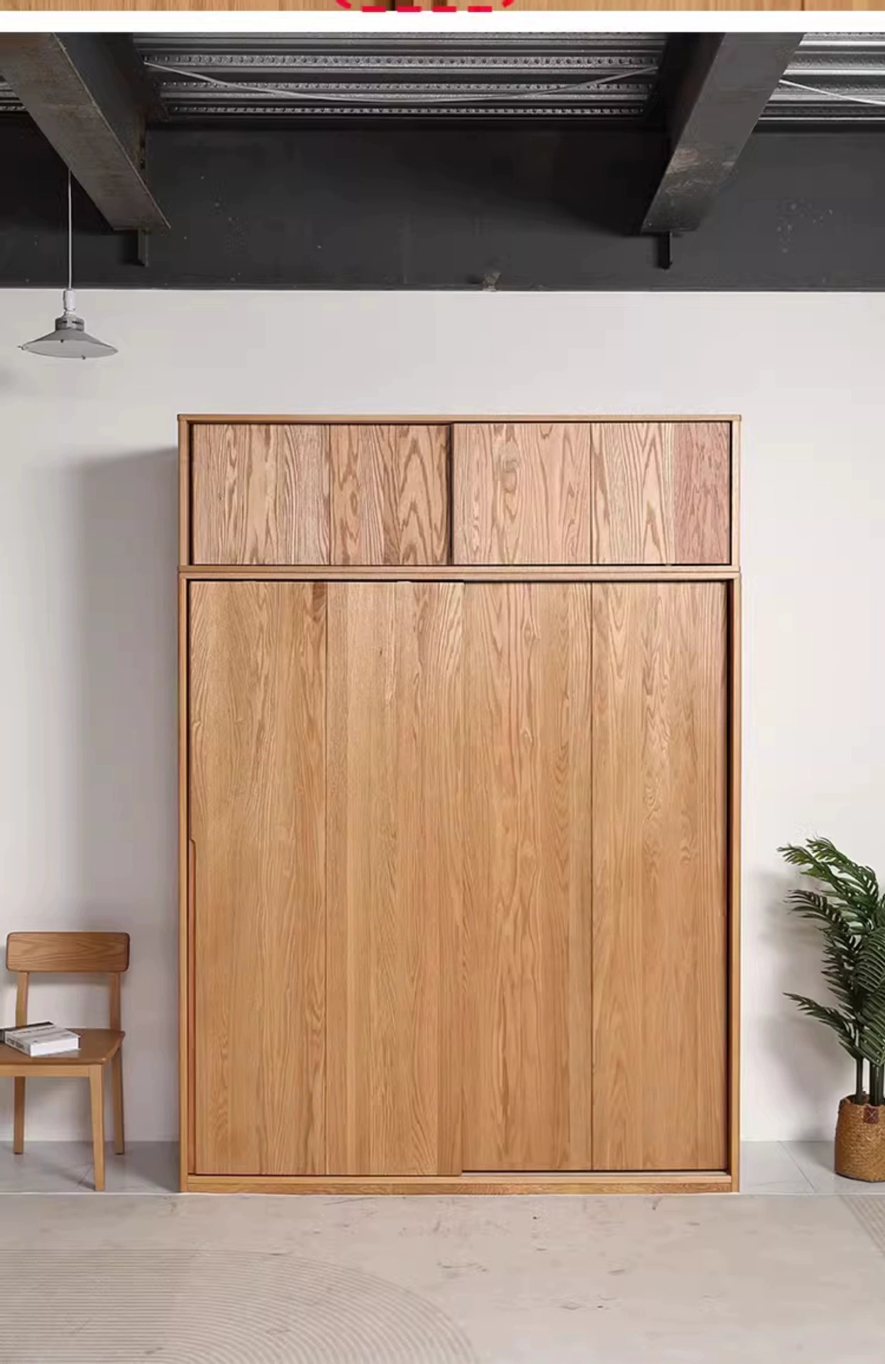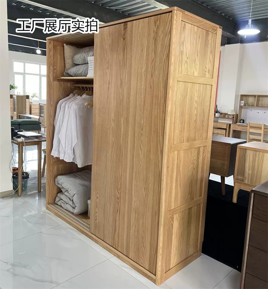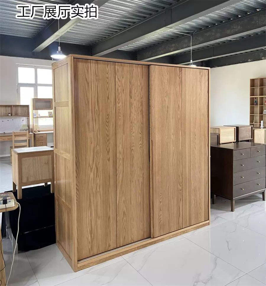 솔리드 우드 옷장 레드 오크 침실 슬라이딩 도어 가정용 슬라이딩 도어 스토리지 캐비닛 옷장 스토리지 캐비닛 북유럽 스타일스토어 가기
