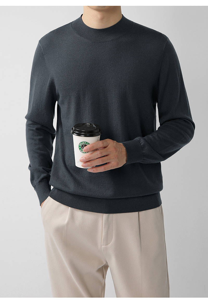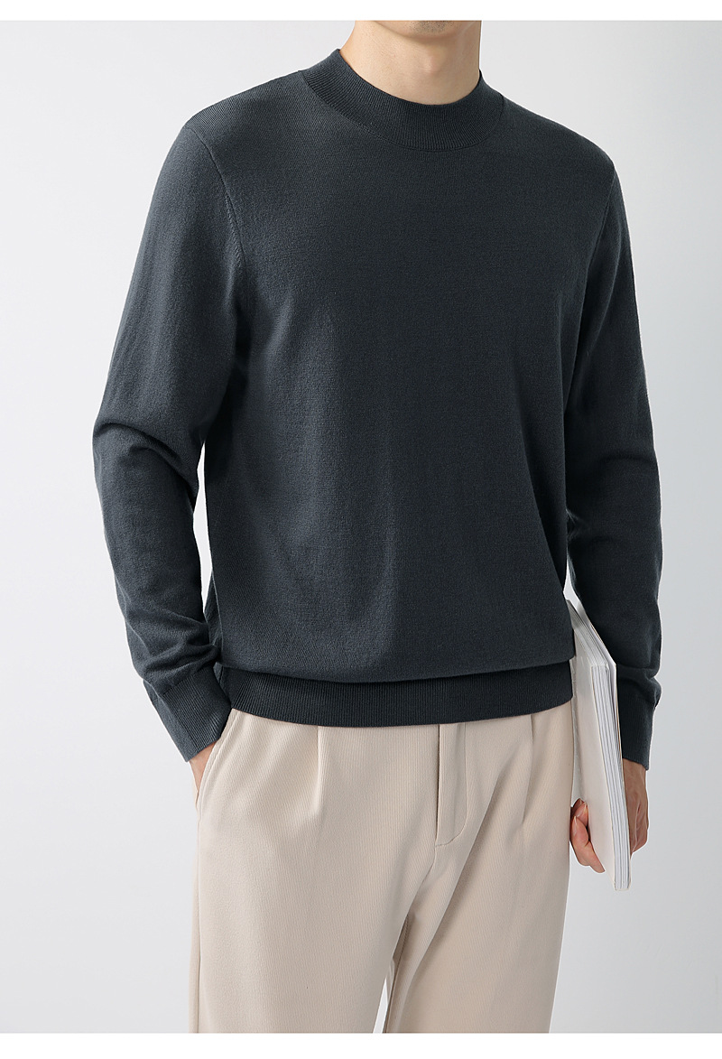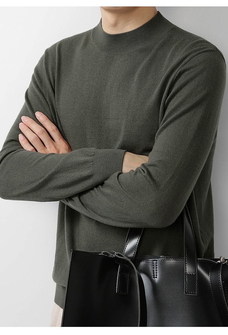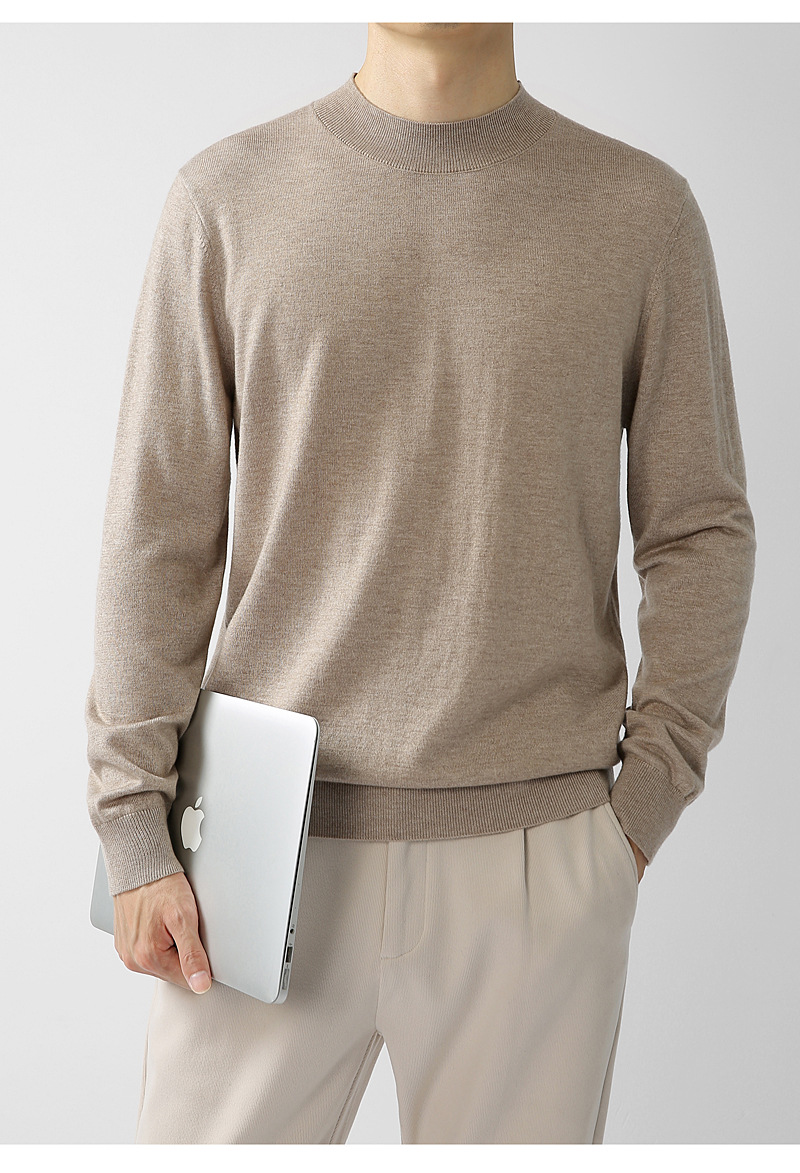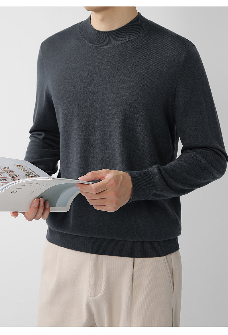 가을 겨울 남성용 심플한 얇은 니트 스웨터, 하이넥 솔리드 컬러의 가벼운 성숙한 스타일의 통근용 울 스웨터