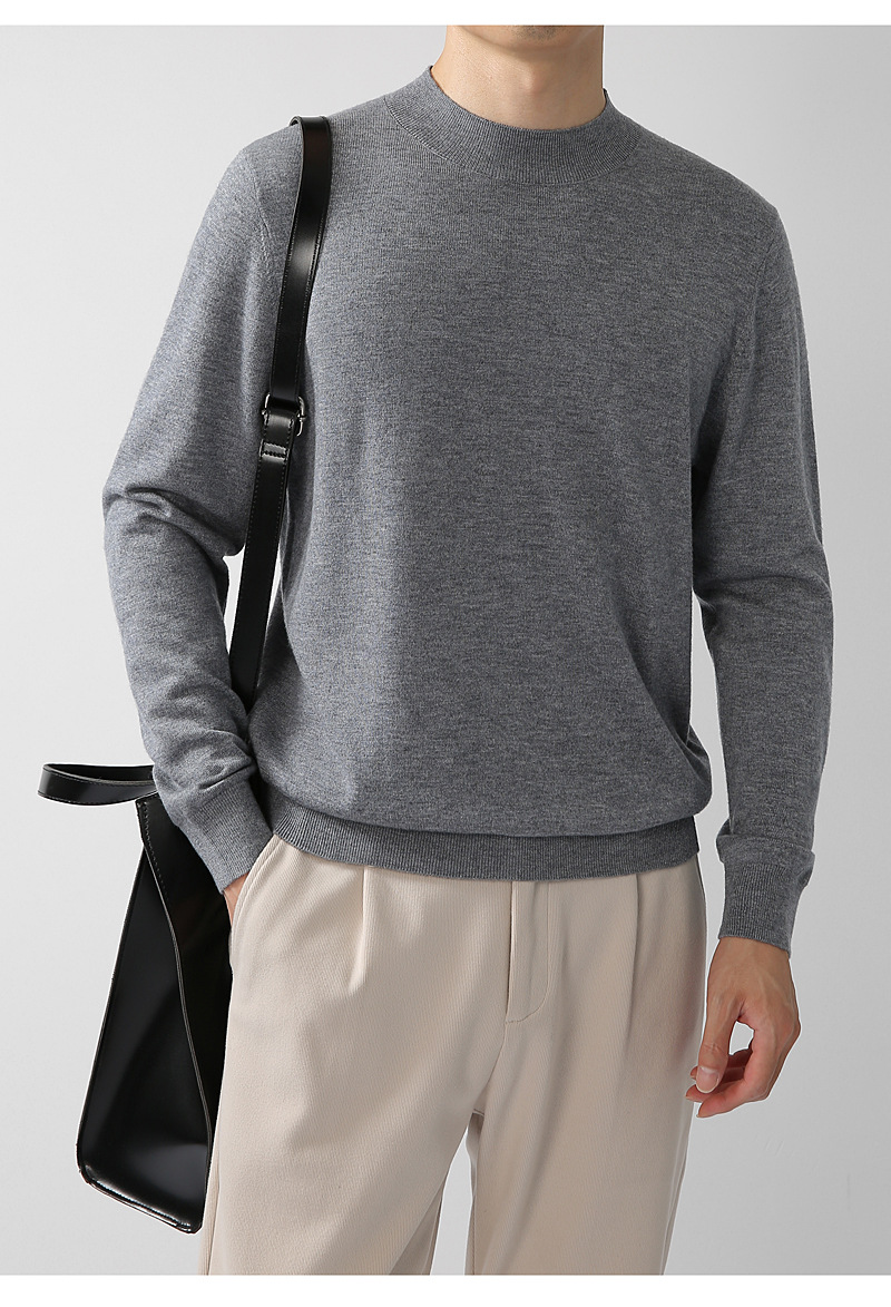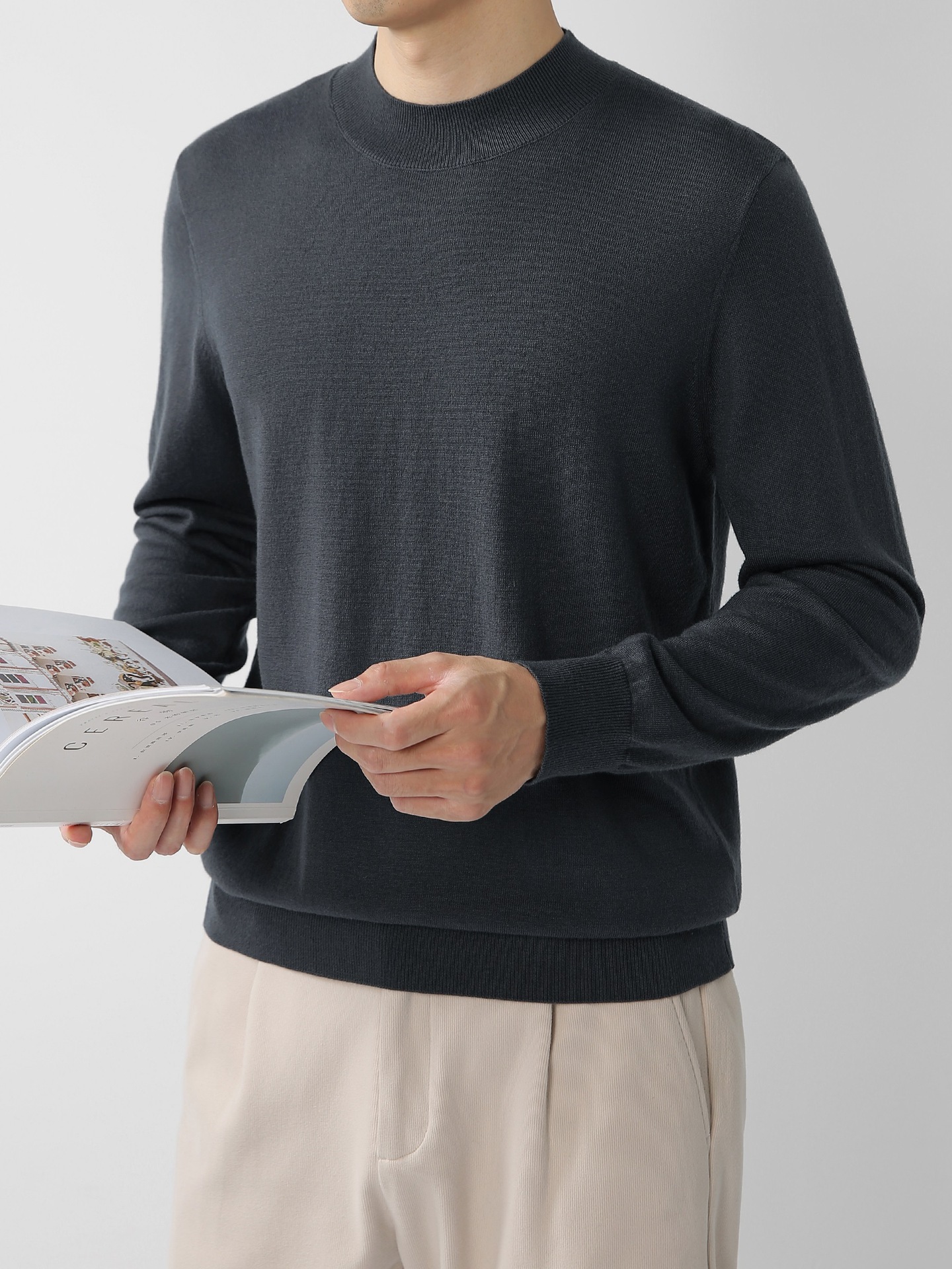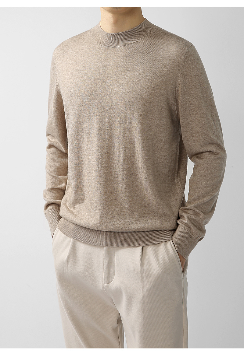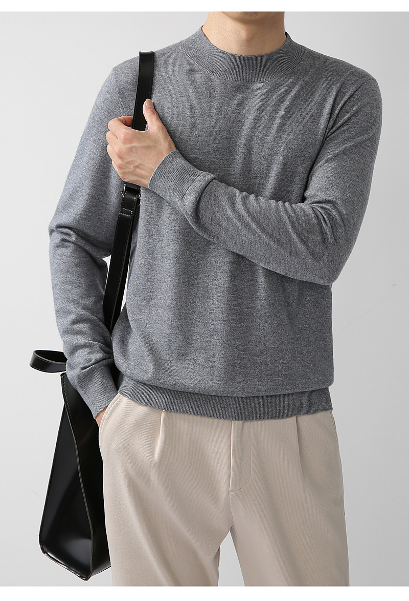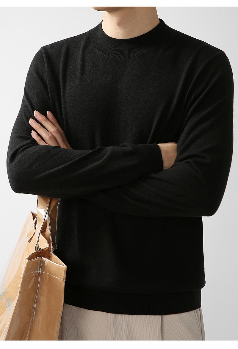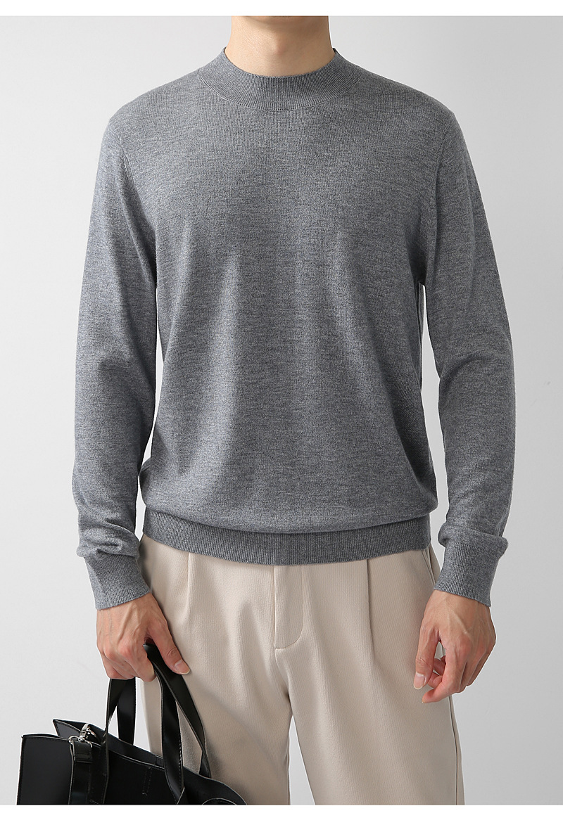 가을 겨울 남성용 심플한 얇은 니트 스웨터, 하이넥 솔리드 컬러의 가벼운 성숙한 스타일의 통근용 울 스웨터