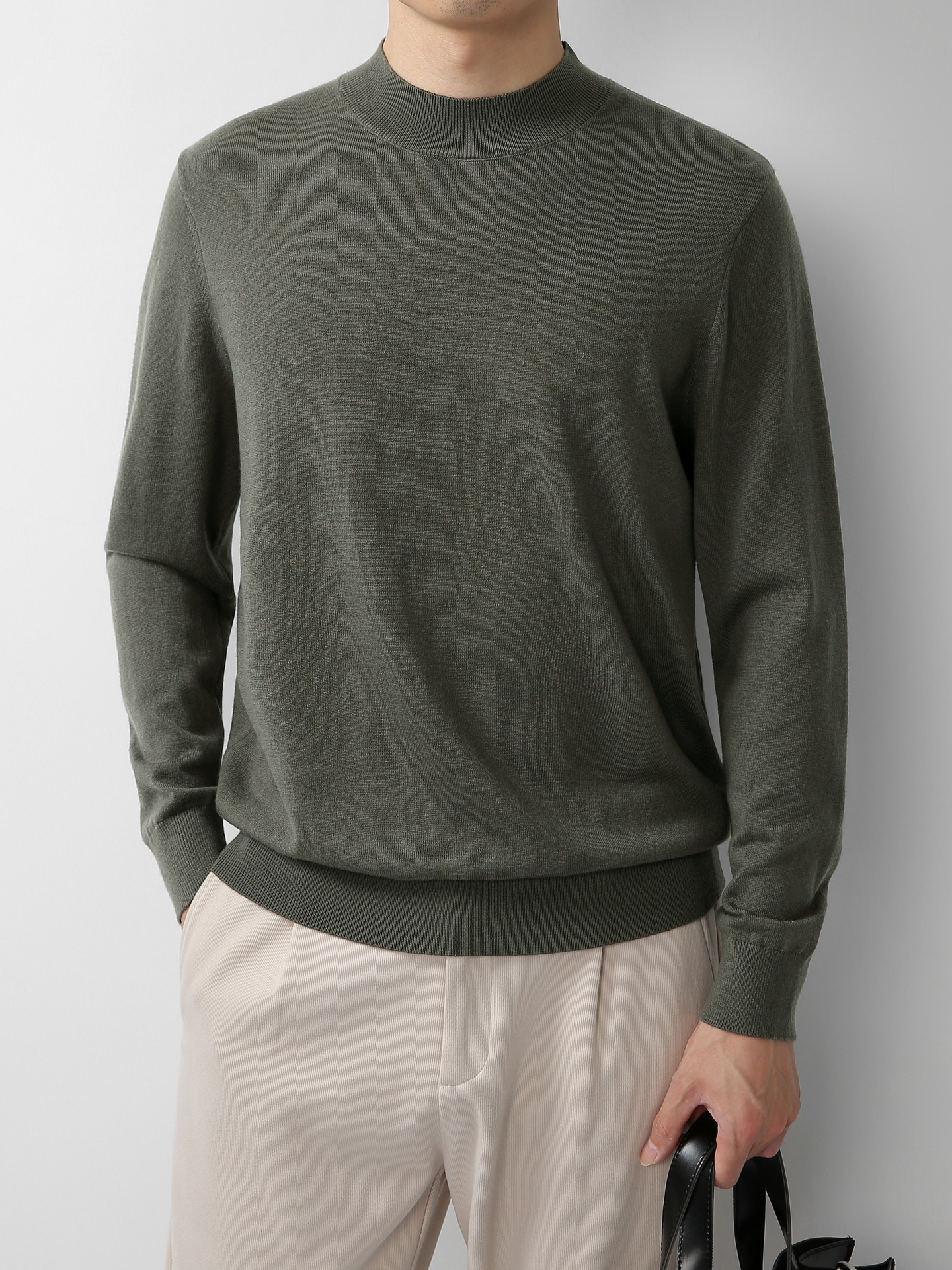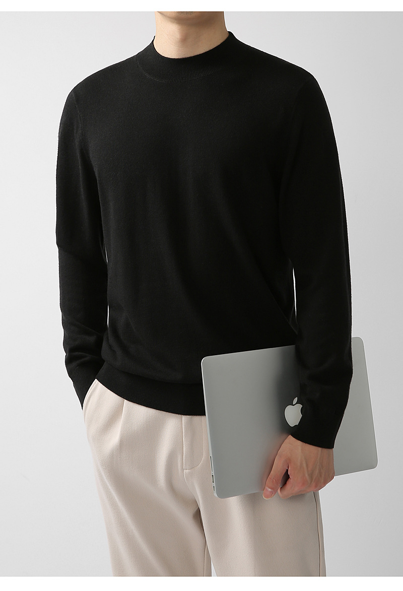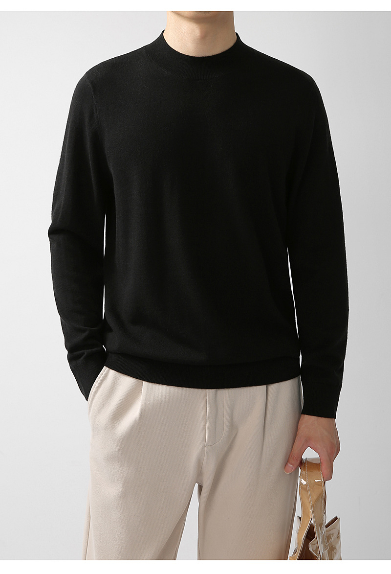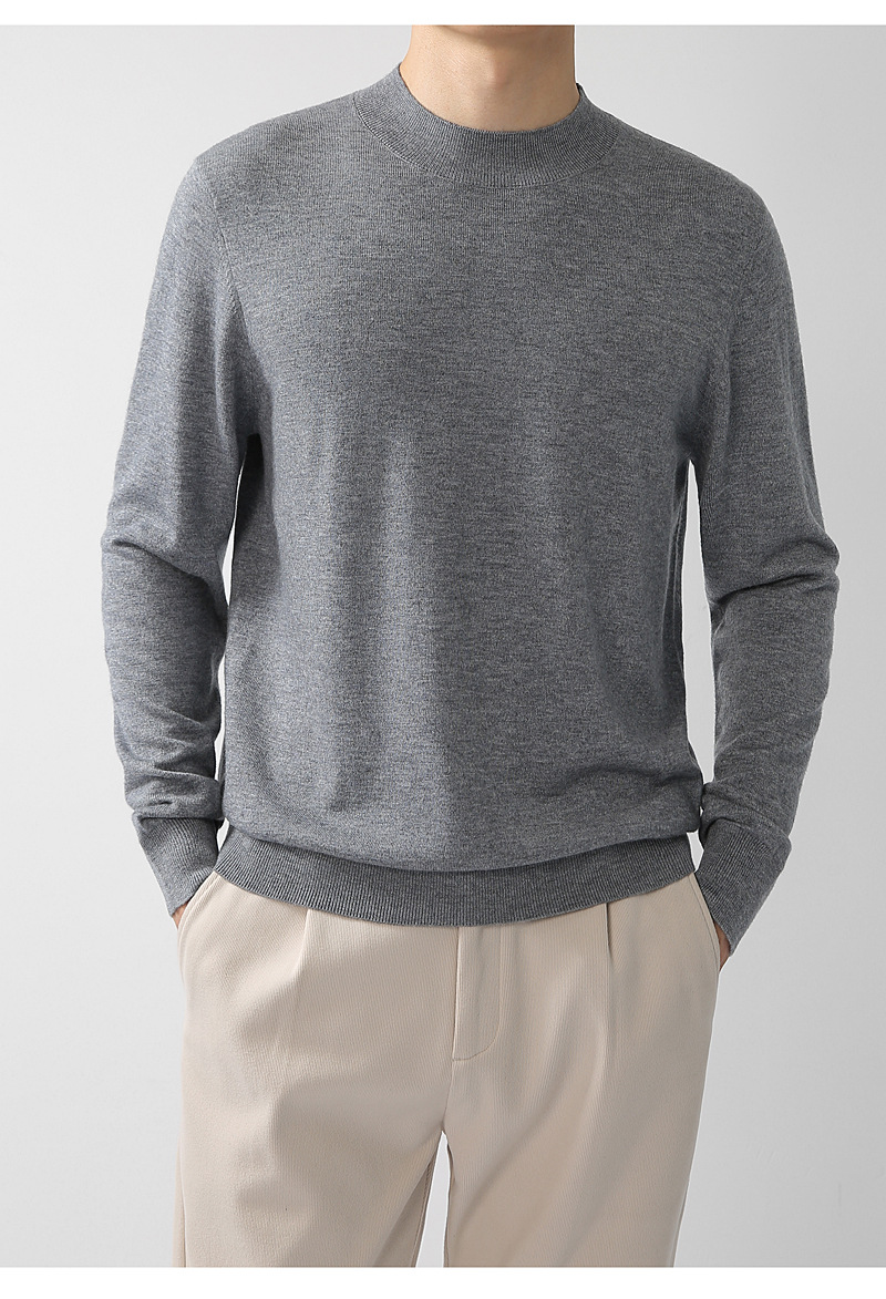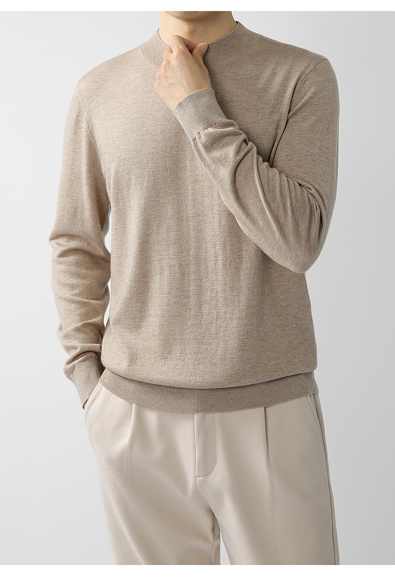 가을 겨울 남성용 심플한 얇은 니트 스웨터, 하이넥 솔리드 컬러의 가벼운 성숙한 스타일의 통근용 울 스웨터