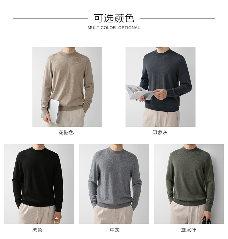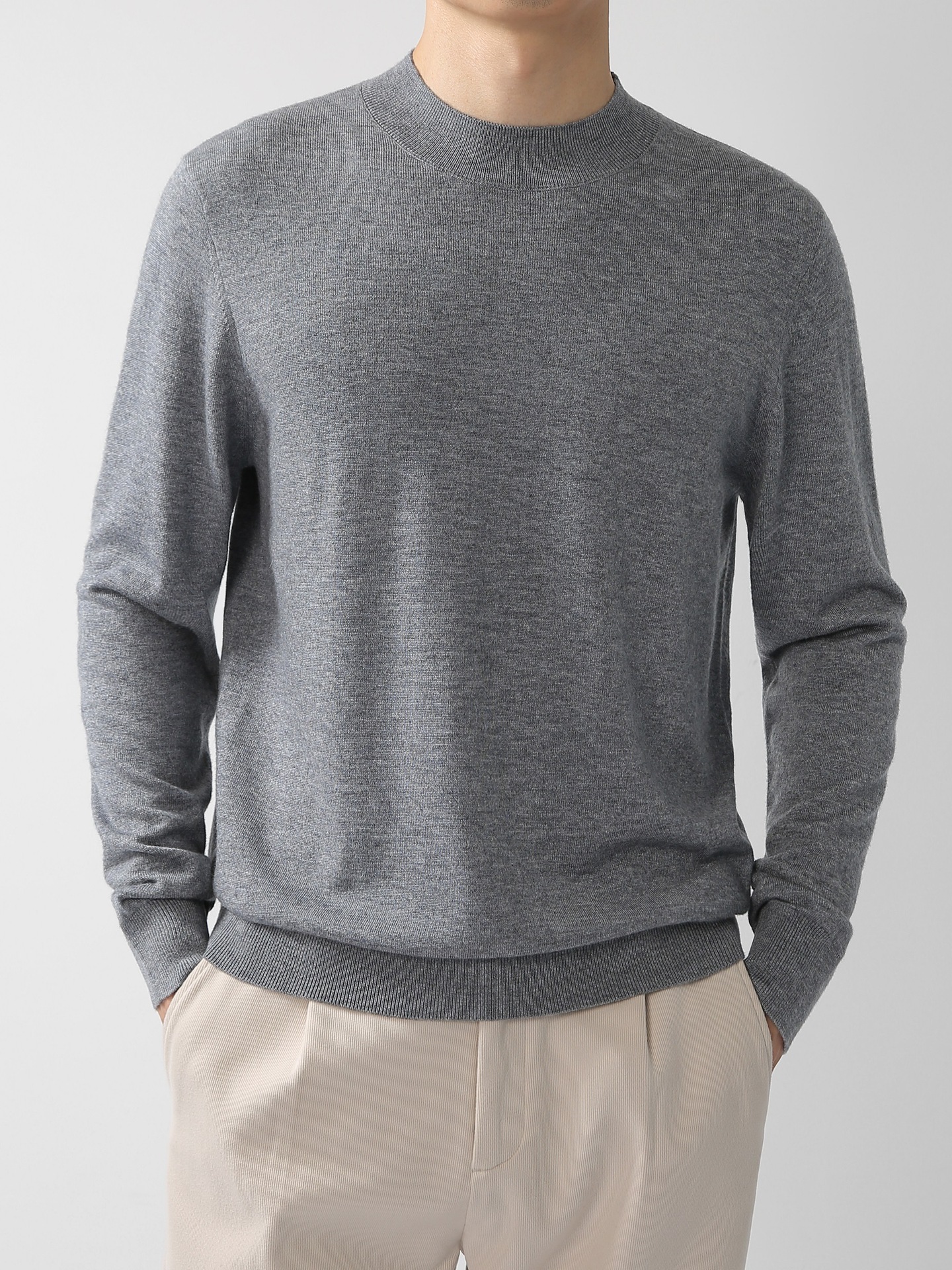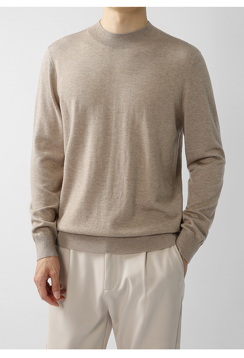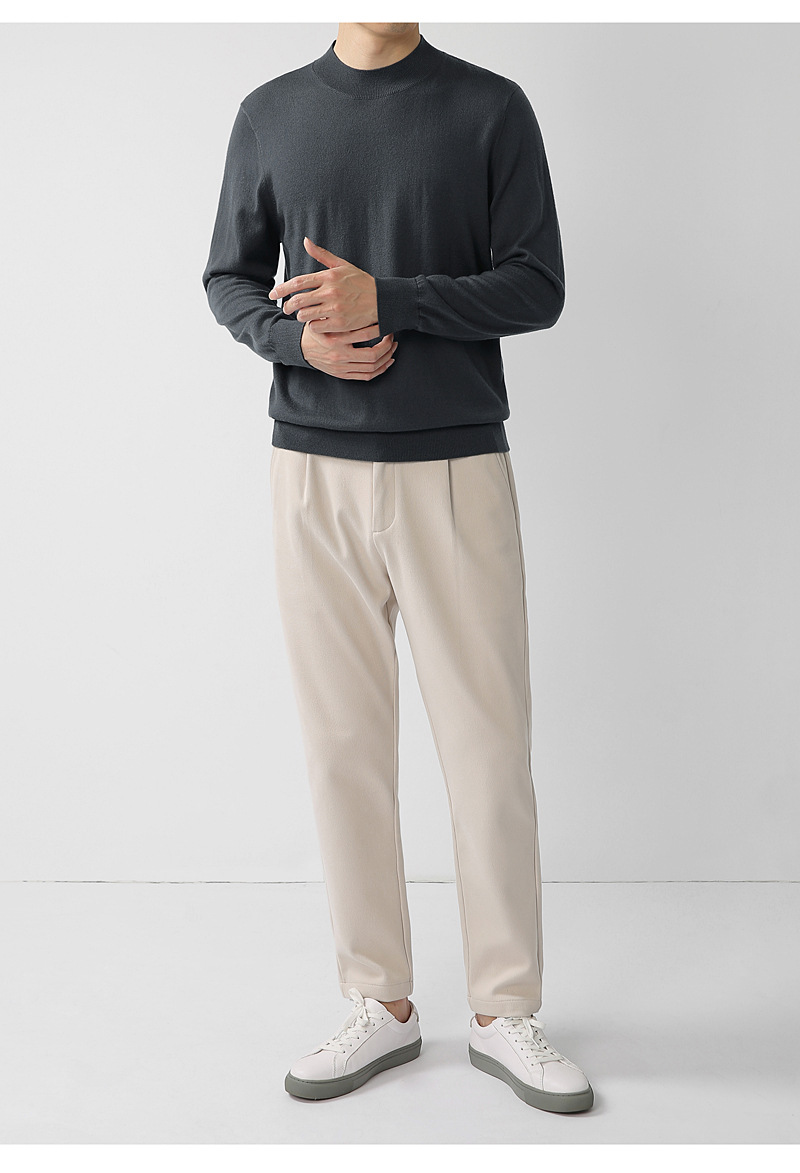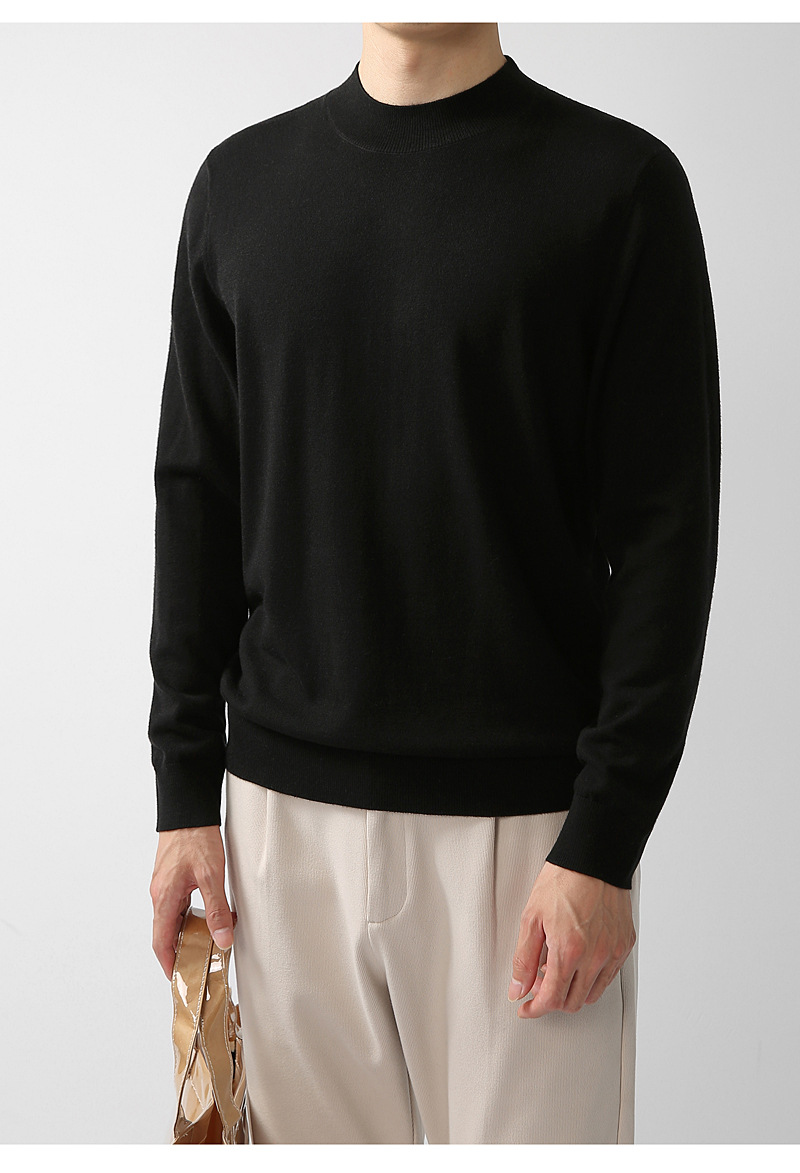 가을 겨울 남성용 심플한 얇은 니트 스웨터, 하이넥 솔리드 컬러의 가벼운 성숙한 스타일의 통근용 울 스웨터