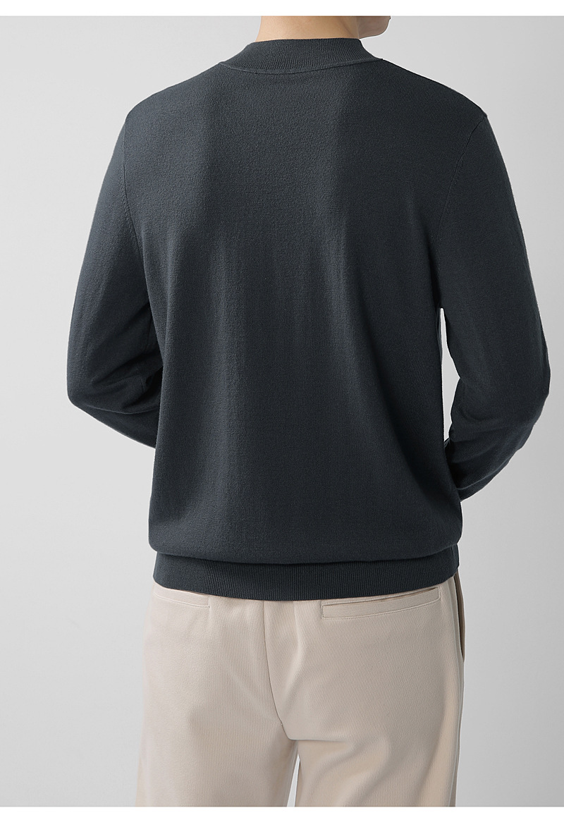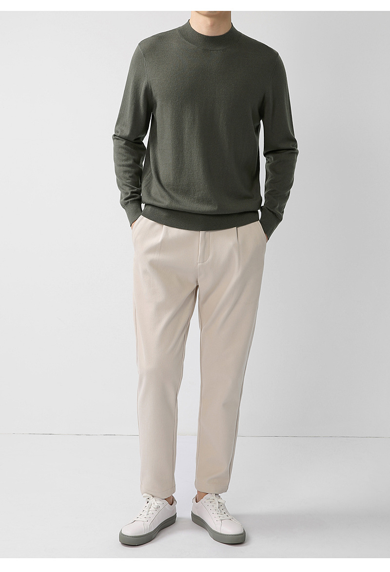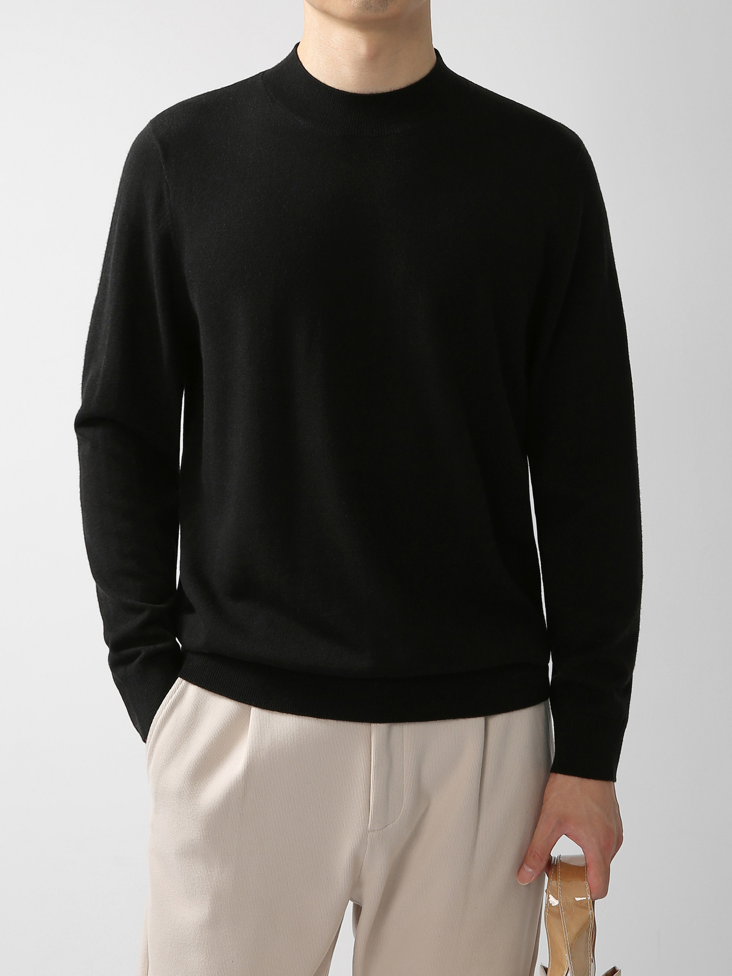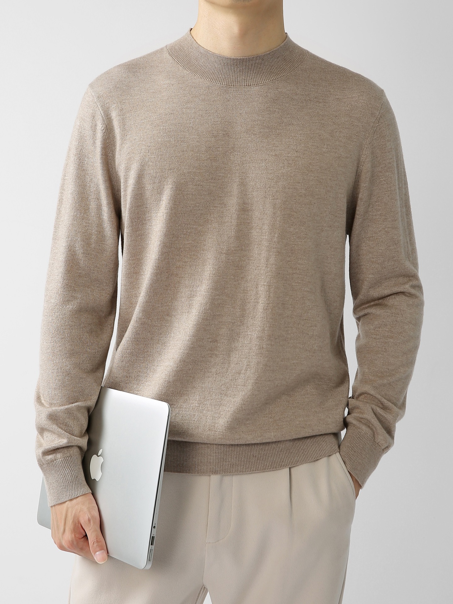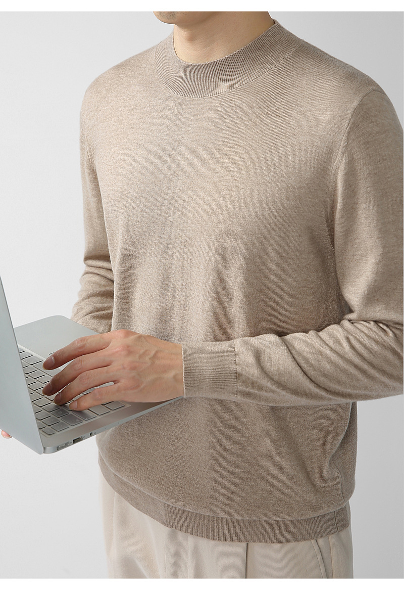 가을 겨울 남성용 심플한 얇은 니트 스웨터, 하이넥 솔리드 컬러의 가벼운 성숙한 스타일의 통근용 울 스웨터