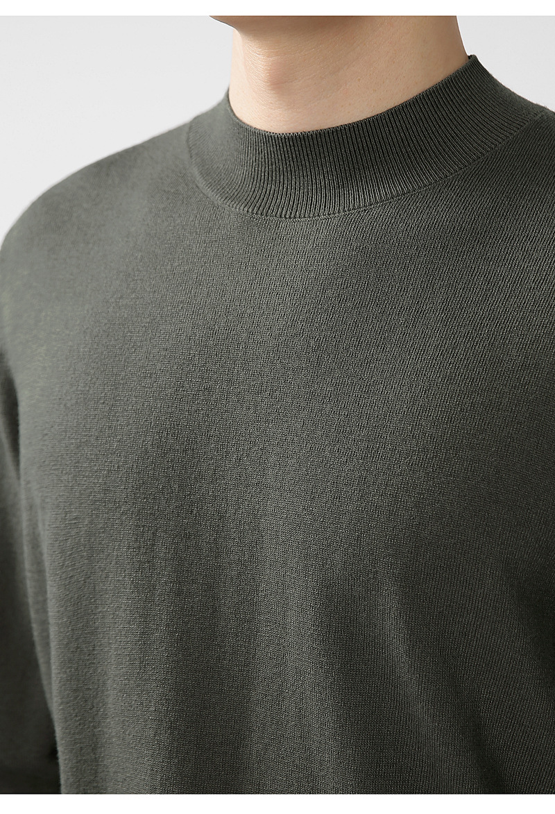가을 겨울 남성용 심플한 얇은 니트 스웨터, 하이넥 솔리드 컬러의 가벼운 성숙한 스타일의 통근용 울 스웨터스토어 가기