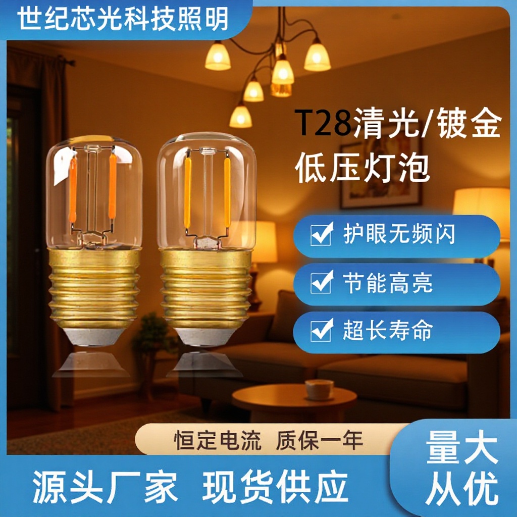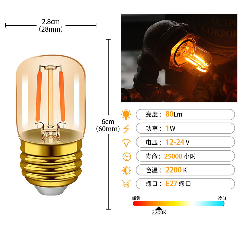 T28 금 도금 저전압 전구 DC12V24V DC 복고풍 에너지 절약 거울 전면 벽 램프 E27 스크류 LED 전구