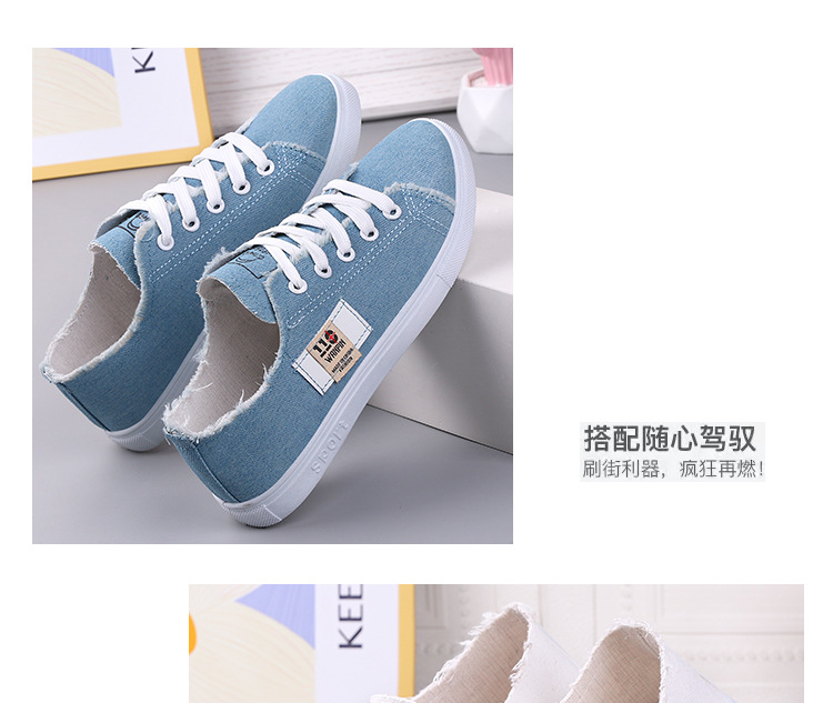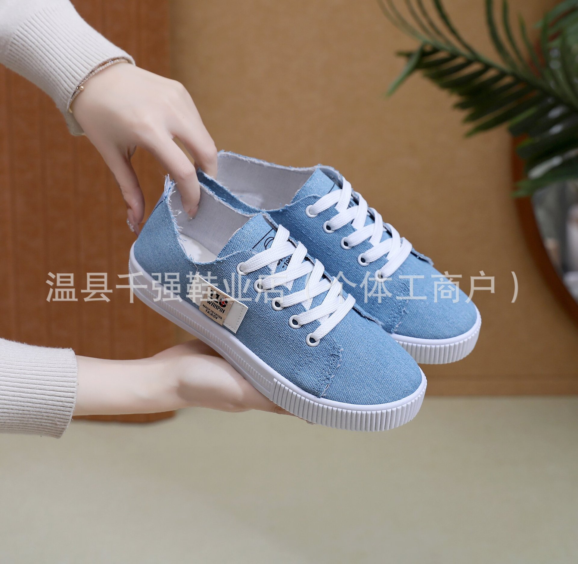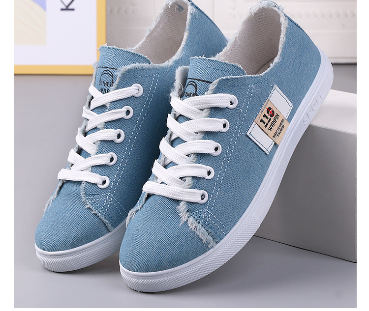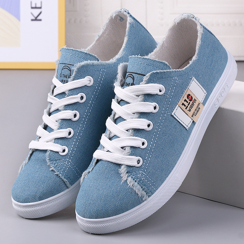 봄 여름 신상품 가벼운 데님 소재 학생화, 여성용 레이스업 얕은 입구 운동화스토어 가기