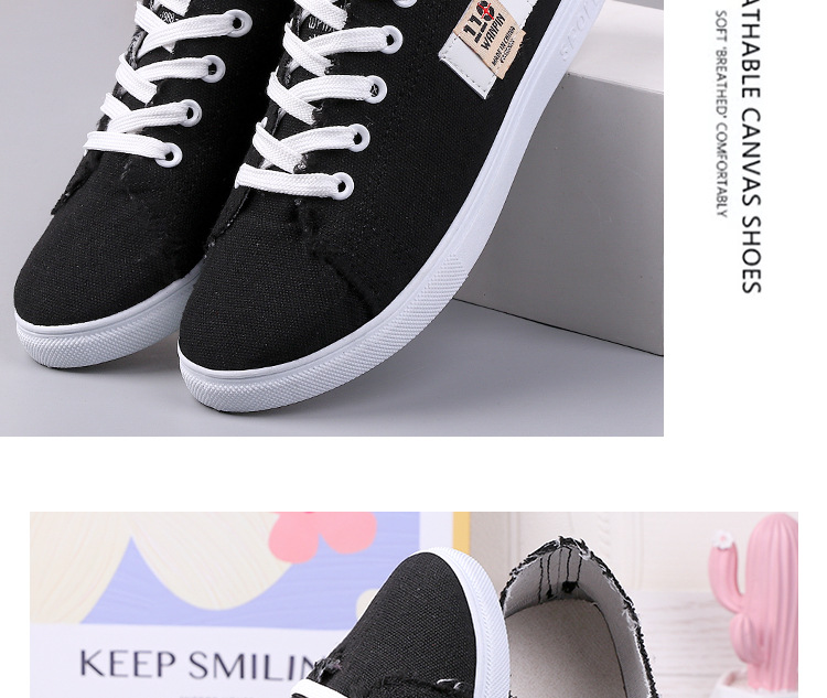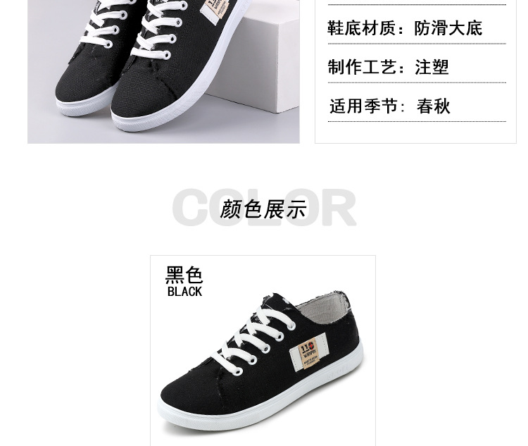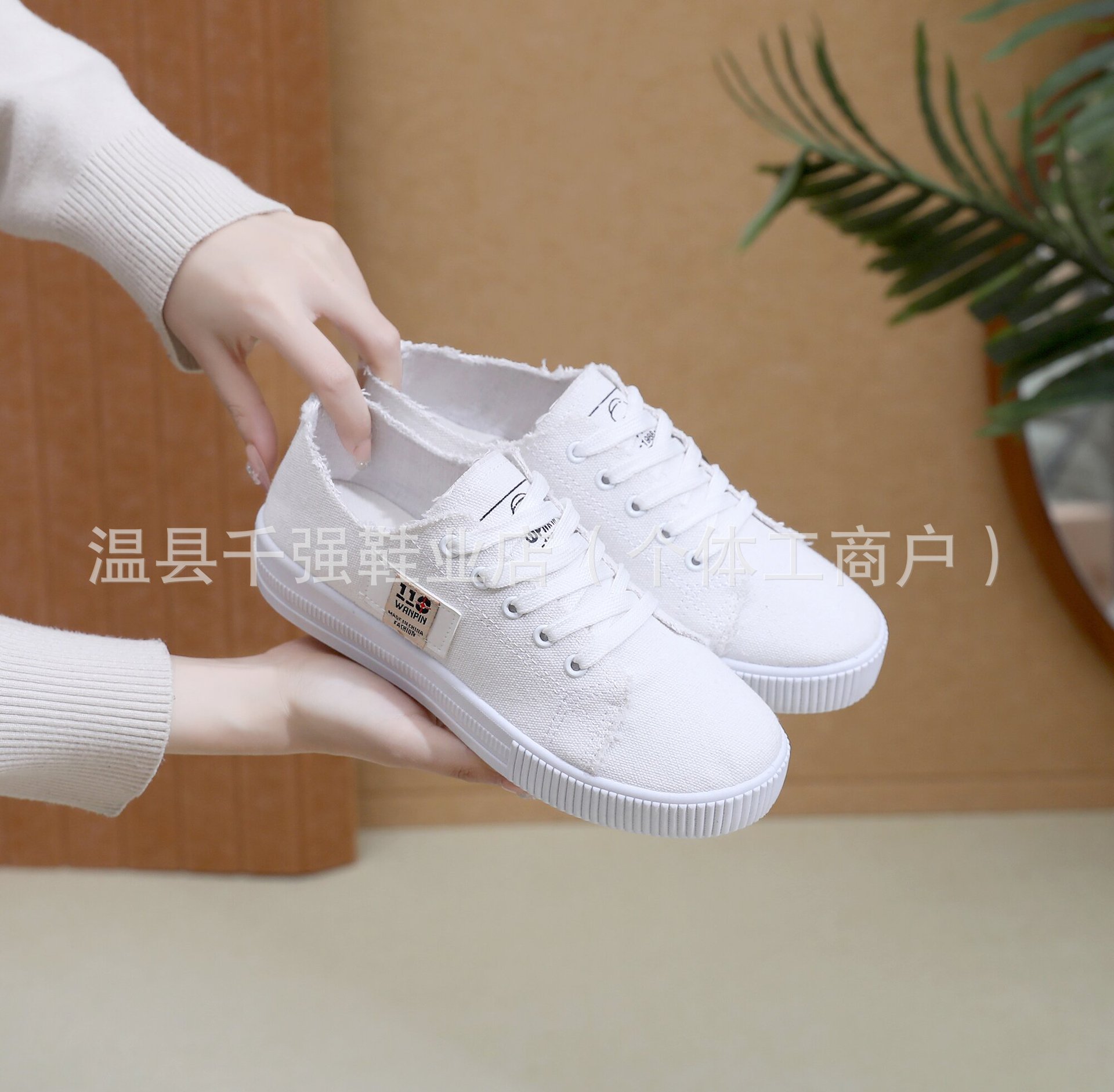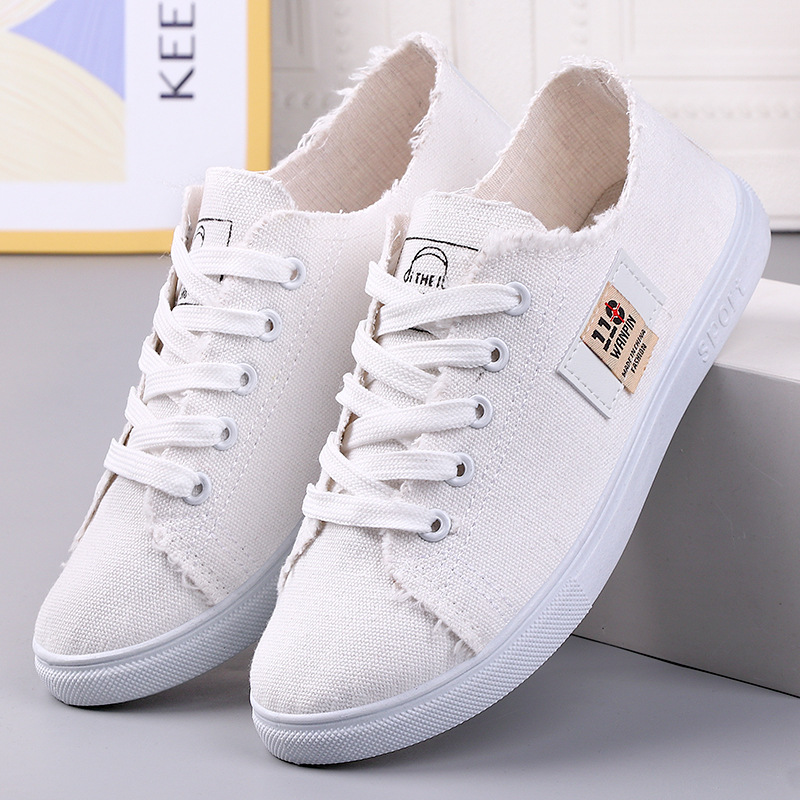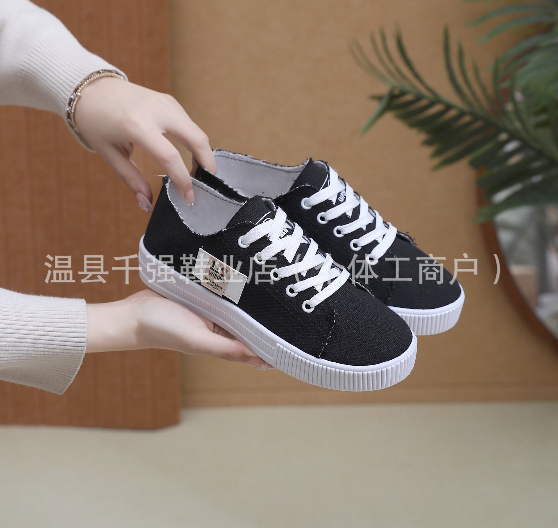봄 여름 신상품 가벼운 데님 소재 학생화, 여성용 레이스업 얕은 입구 운동화스토어 가기