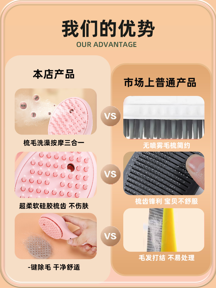 애완 동물 스프레이 마사지 빗 스팀 빗 브러쉬 고양이 헤어 클리너 고양이 개 머리 무료 목욕 고양이 빗스토어 가기