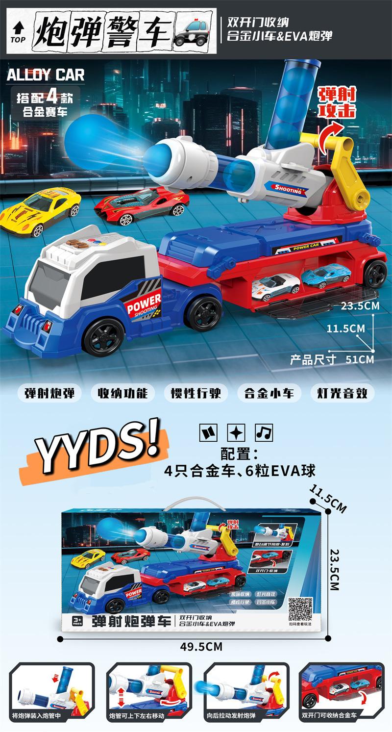 • [배터리 버전] 트럭 발사체/저장 장치 2-in-1: 합금 차량 4대 + 발사체 6개