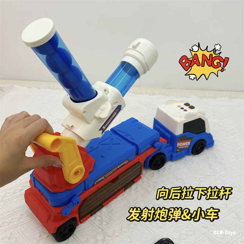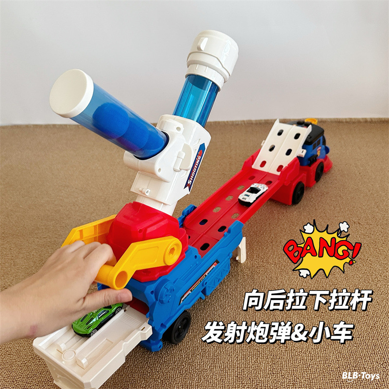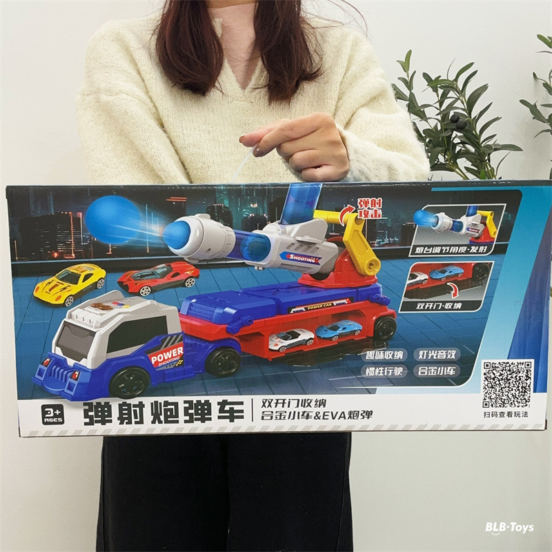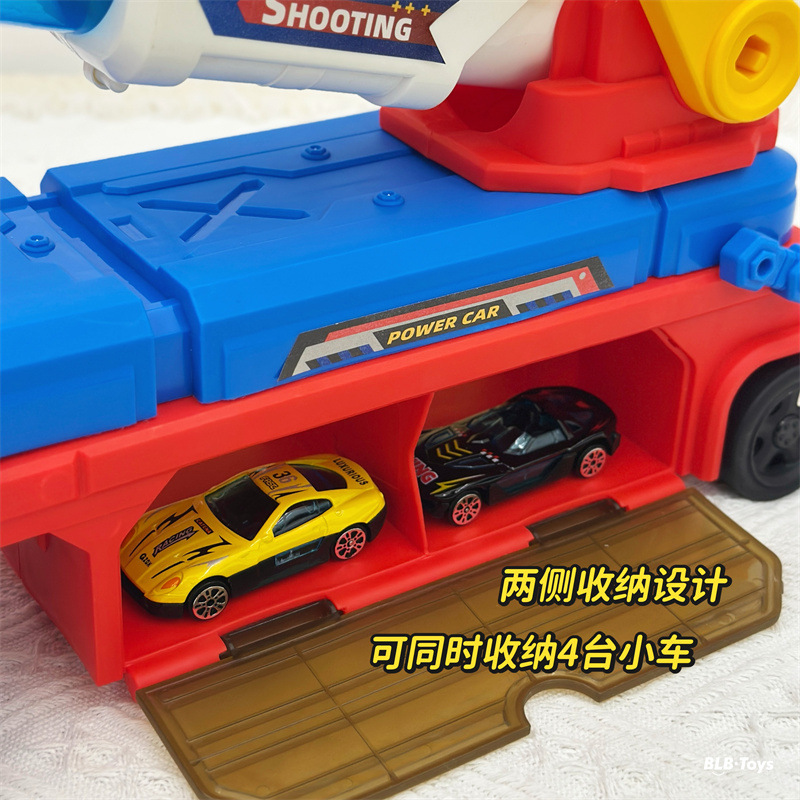 • [충전식 버전] 트럭 발사체/저장 장치 2-in-1: 합금 자동차 4대 + 발사체 6개