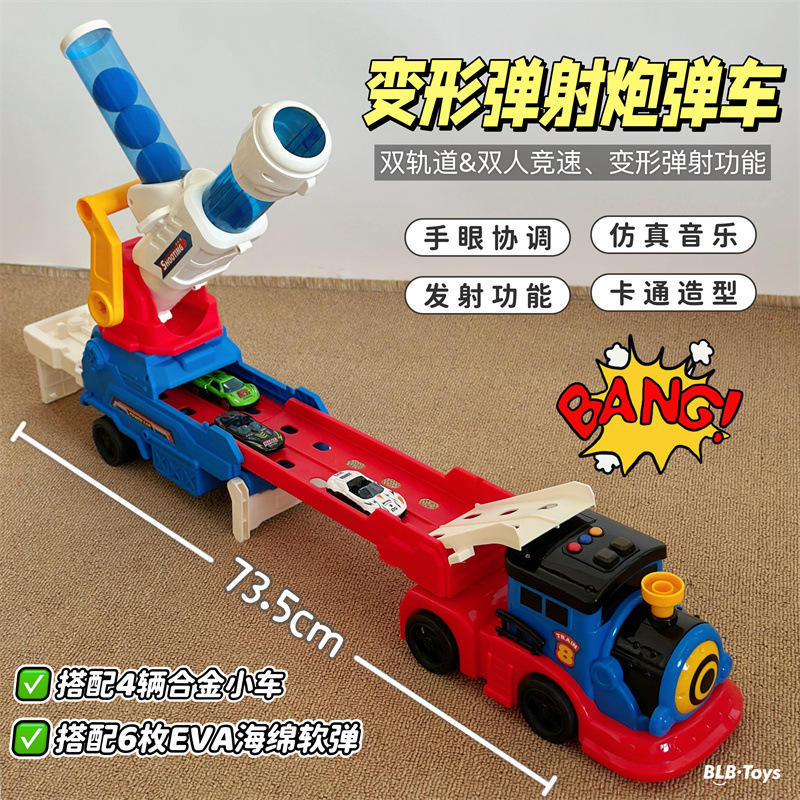 • [충전식 버전] 기차 발사체/궤도 2-in-1: 합금 자동차 4대 + 발사체 6개