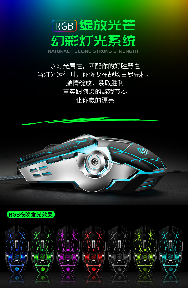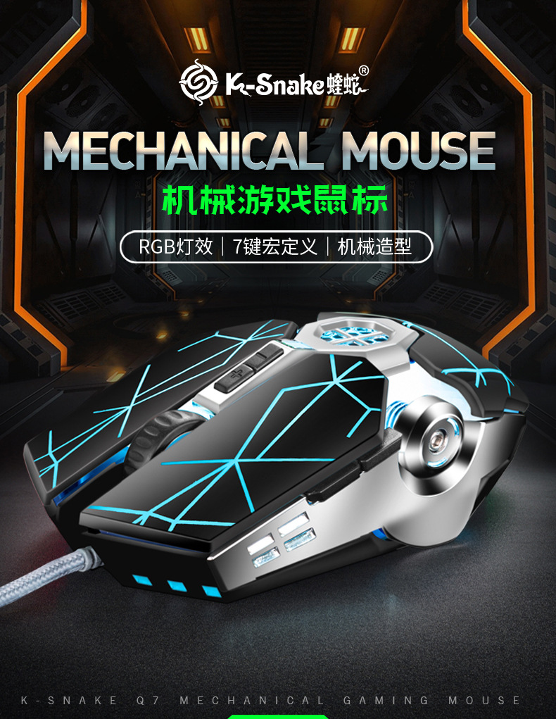 새로운 바이퍼 Q7 마우스 게임 랭글러 유선 발광 컴퓨터 USB Esports 마우스 아마존 이베이스토어 가기