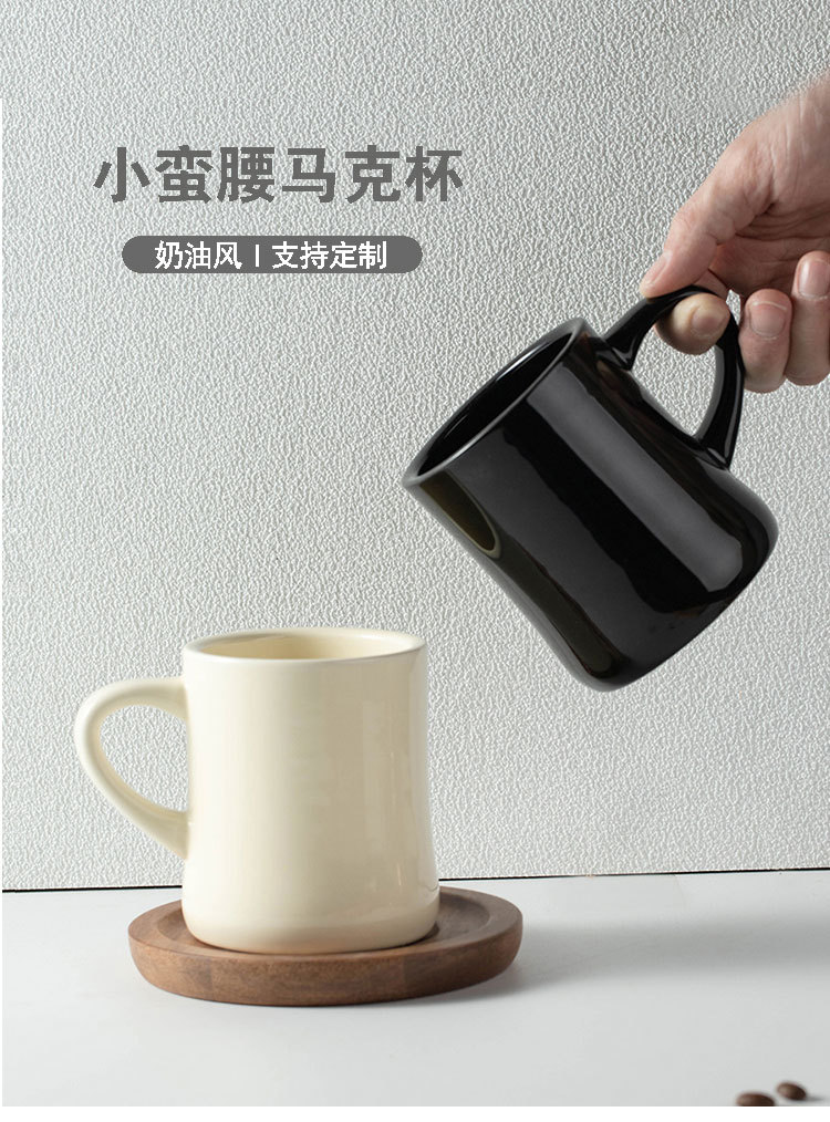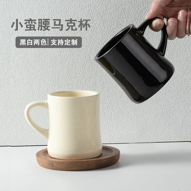 INS 스타일 간단한 크림 컬러 세라믹 커플 찻잔 작은 허리 컵 커피 컵 선물 코스터 로고