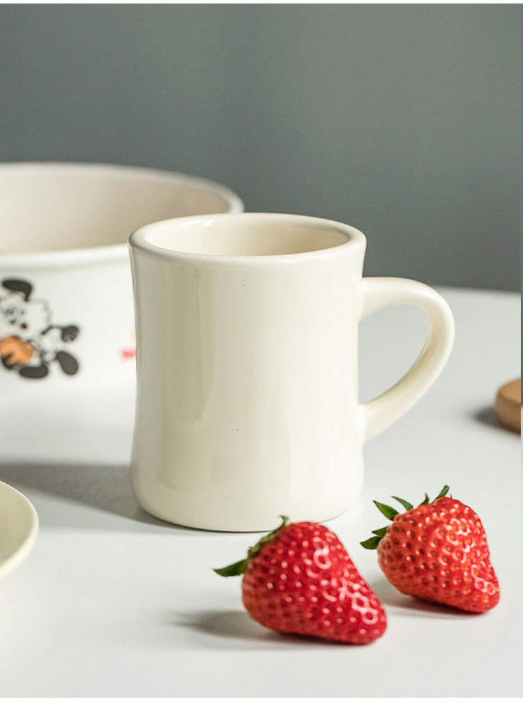 INS 스타일 간단한 크림 컬러 세라믹 커플 찻잔 작은 허리 컵 커피 컵 선물 코스터 로고스토어 가기