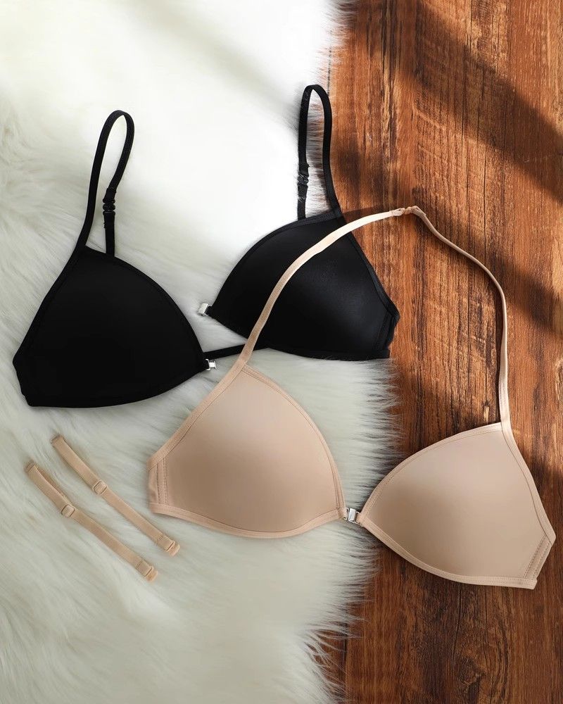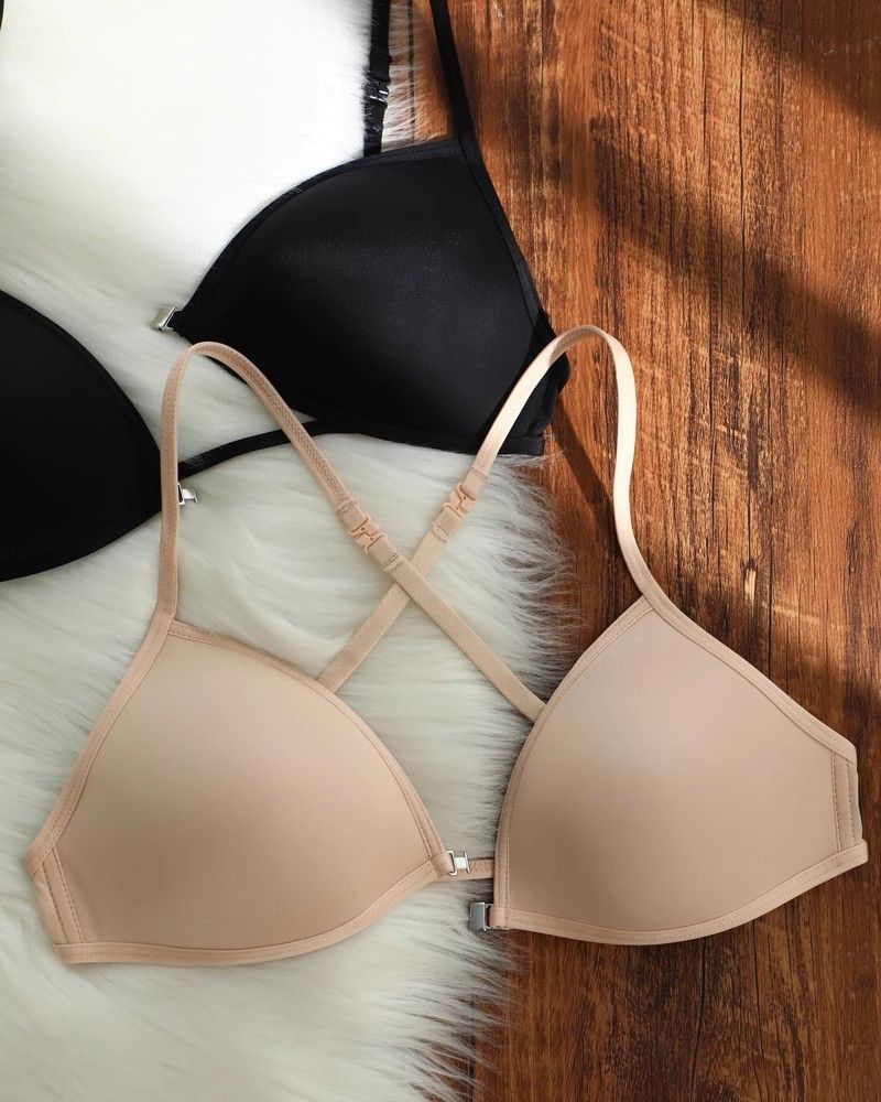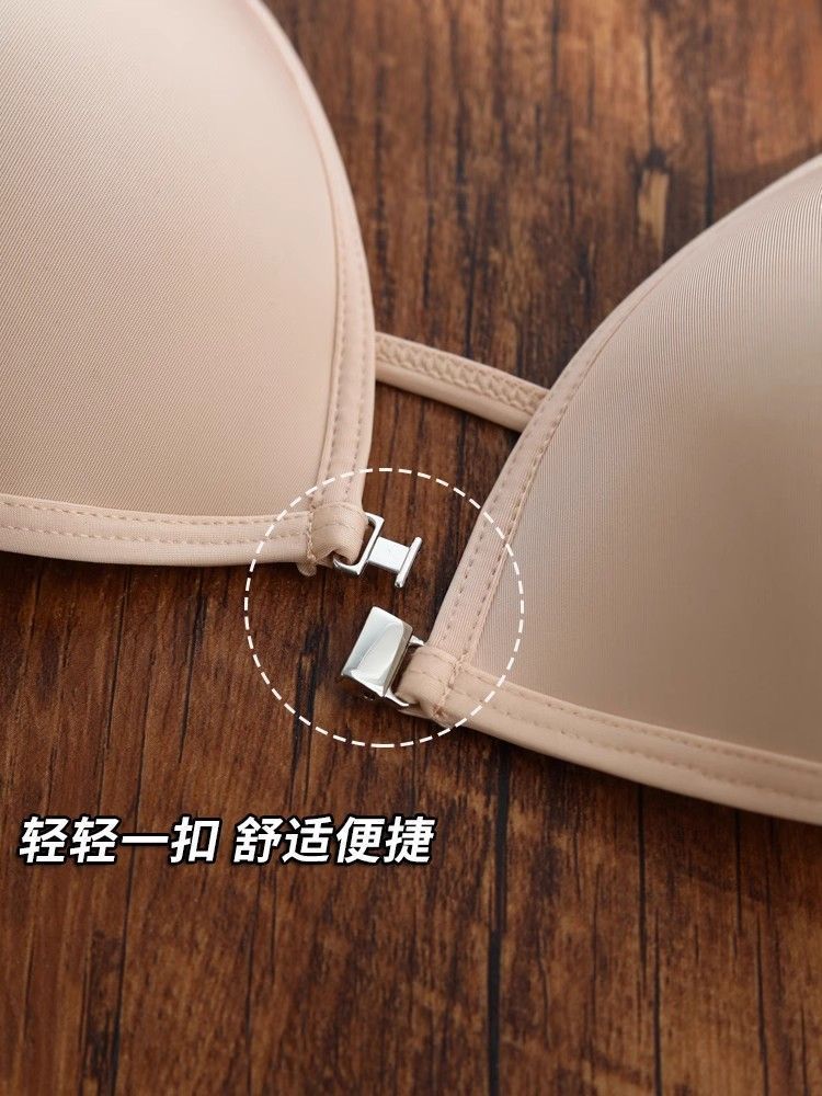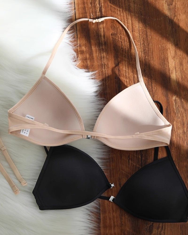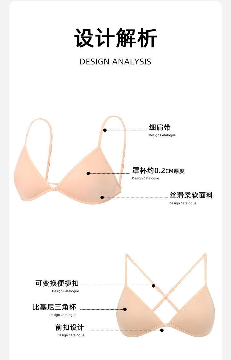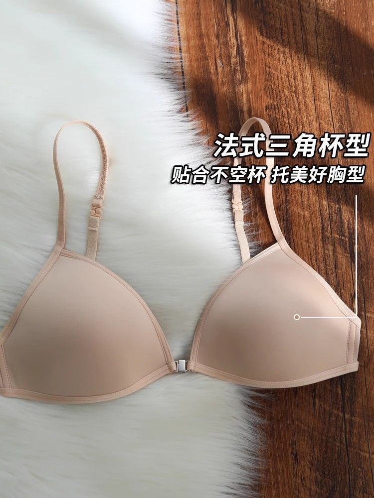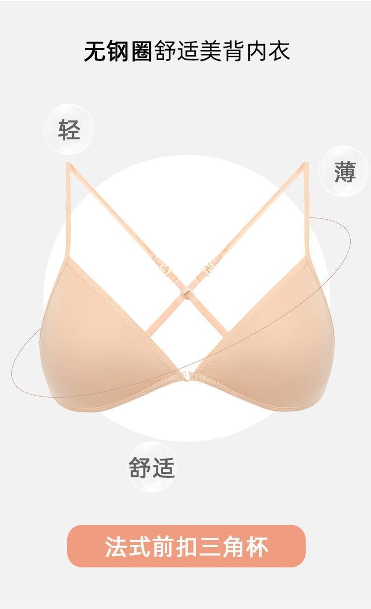 여름 프랑스 트라이앵글 컵 속옷 여성의 아름다운 등 교수형 목 얇은 어깨 스트랩 앞 버클 브래지어 얇은 마크 작은 가슴 브래지어스토어 가기