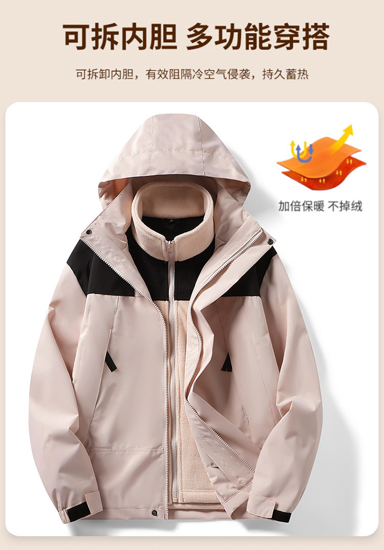 베이징 폭행 의류 여성 재킷 코트 3 대 1 세트 탈착식 방풍 따뜻한 기모 조수 2023 남자스토어 가기