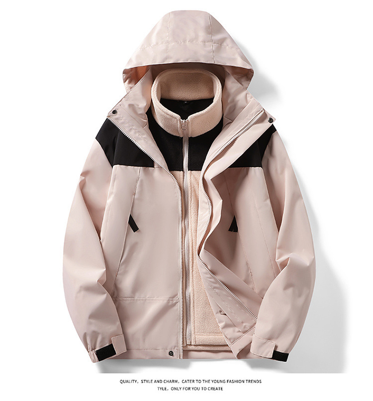 베이징 폭행 의류 여성 재킷 코트 3 대 1 세트 탈착식 방풍 따뜻한 기모 조수 2023 남자