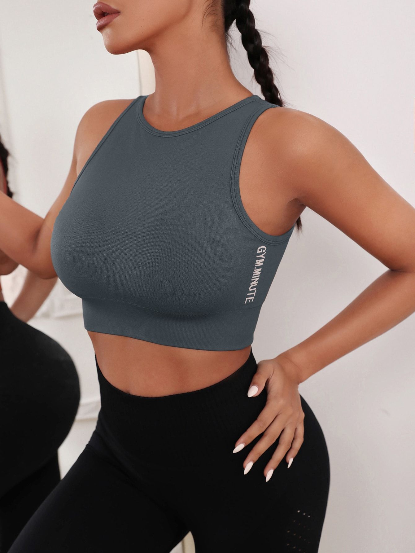 국경 간 빠른 건조 통기성 요가 의류 조끼 슬림 핏 허리 충격 방지 스포츠 속옷 야외 피트니스 의류 소매 티셔츠
