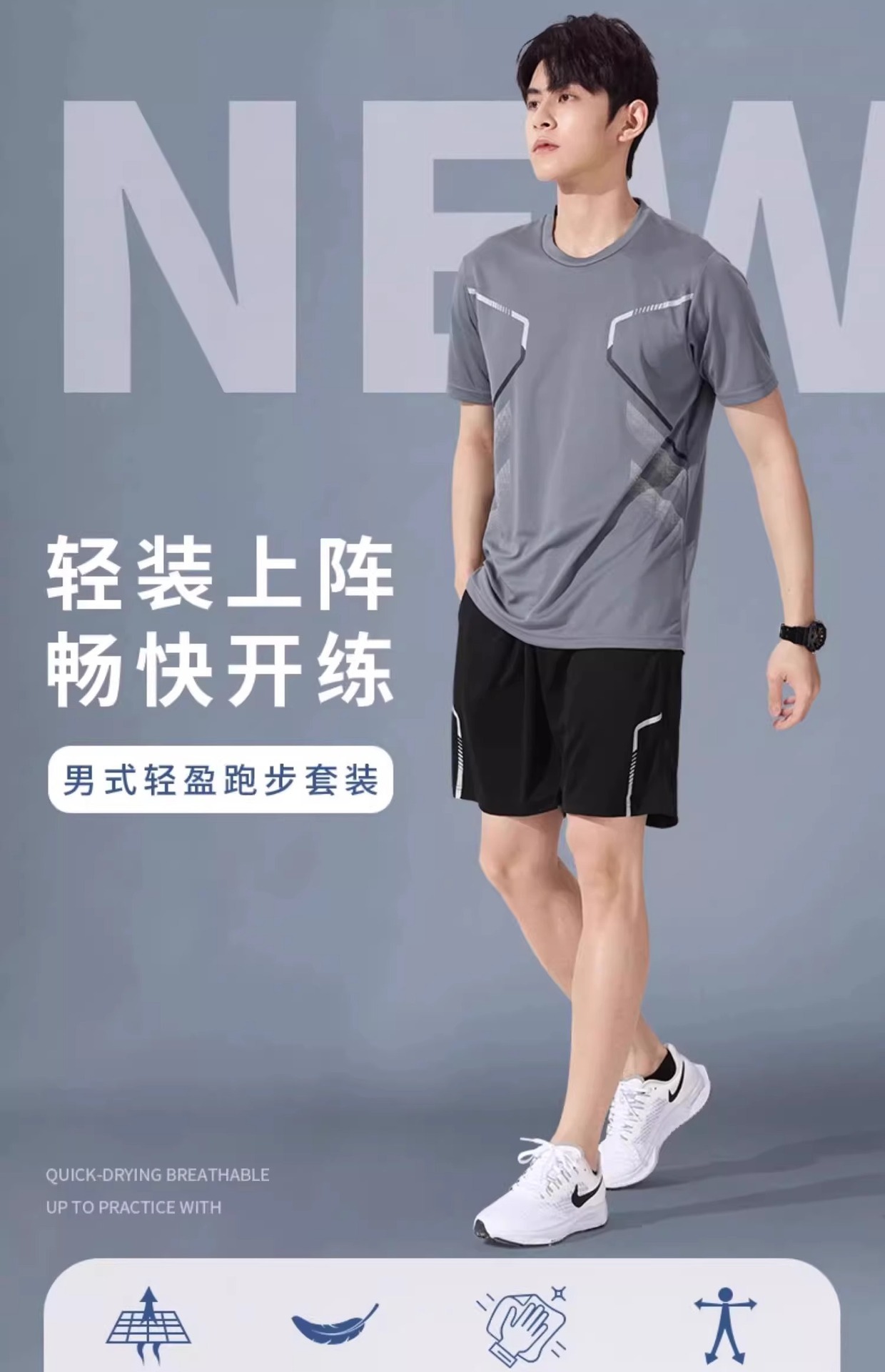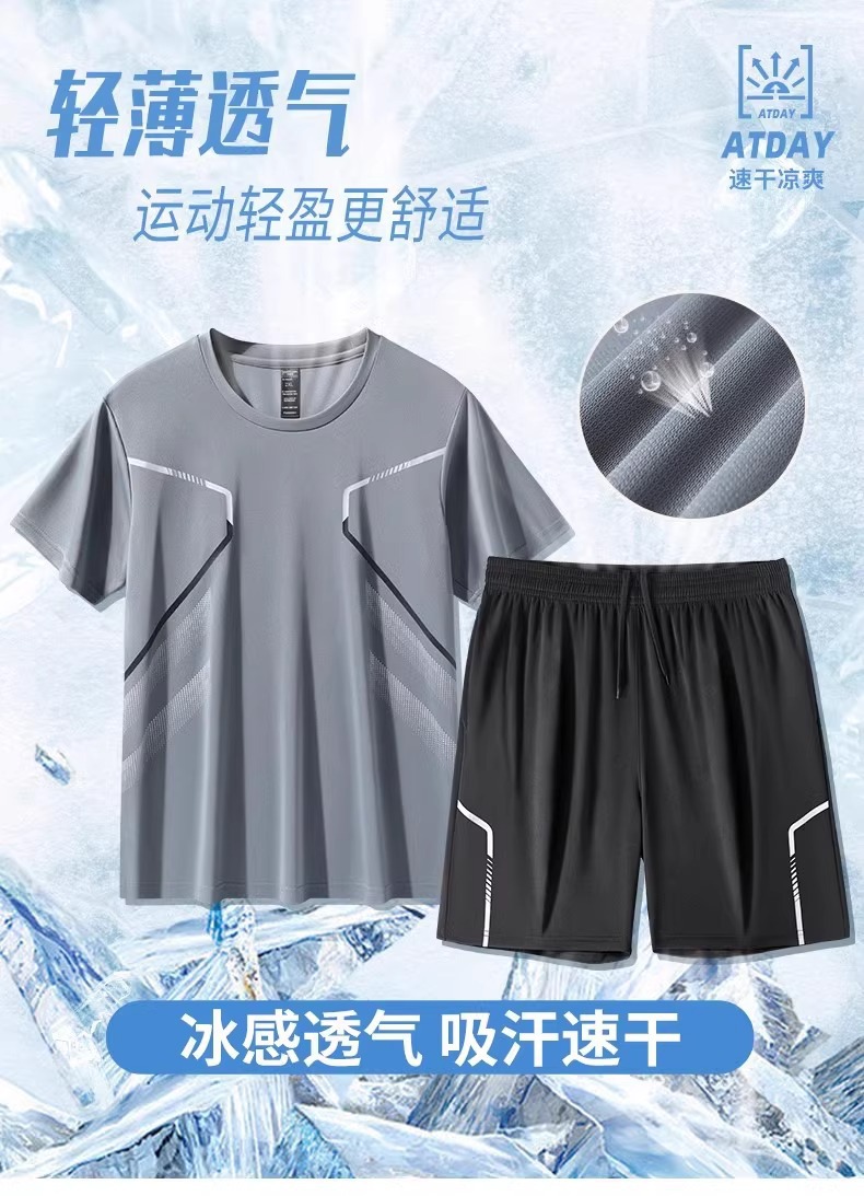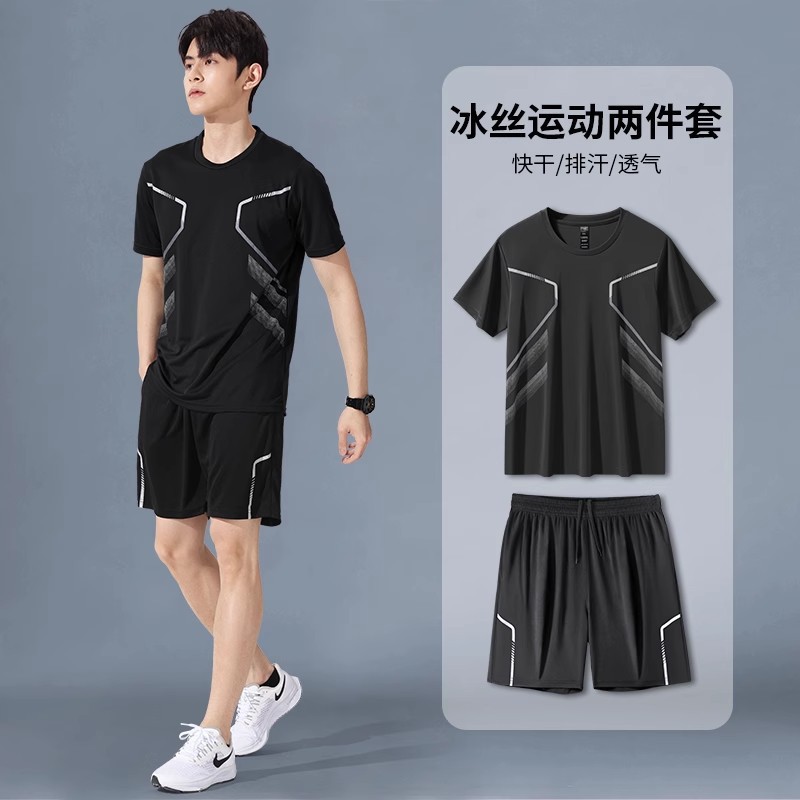 운동복 세트 남자 달리기 반팔 아이스 실크 여름 빠른 건조 옷 농구 옷 깃털 피트니스 옷 반바지 여름스토어 가기