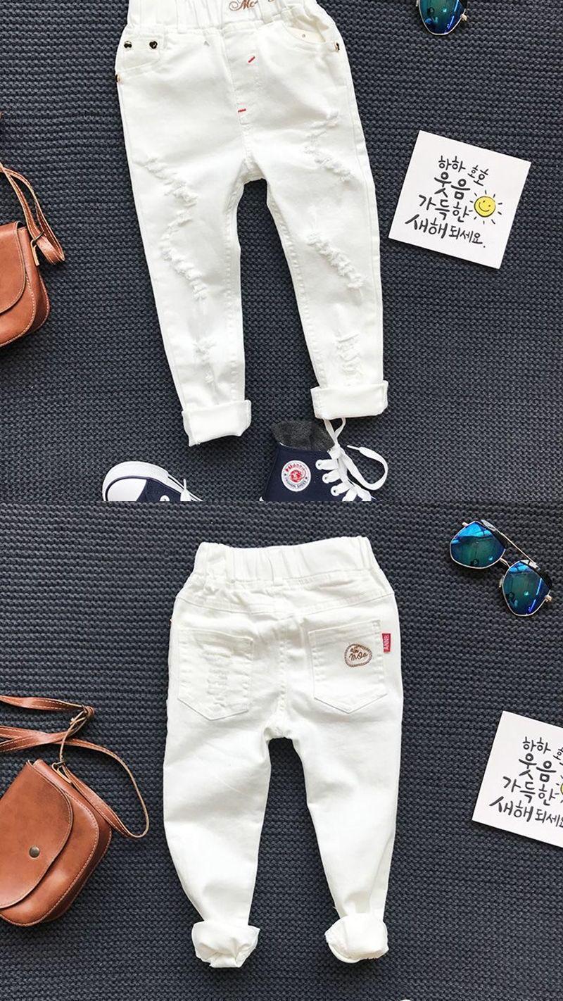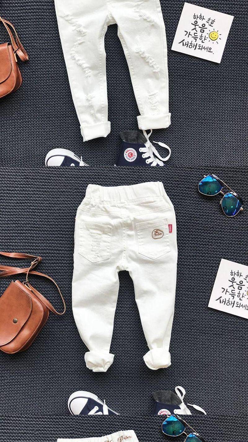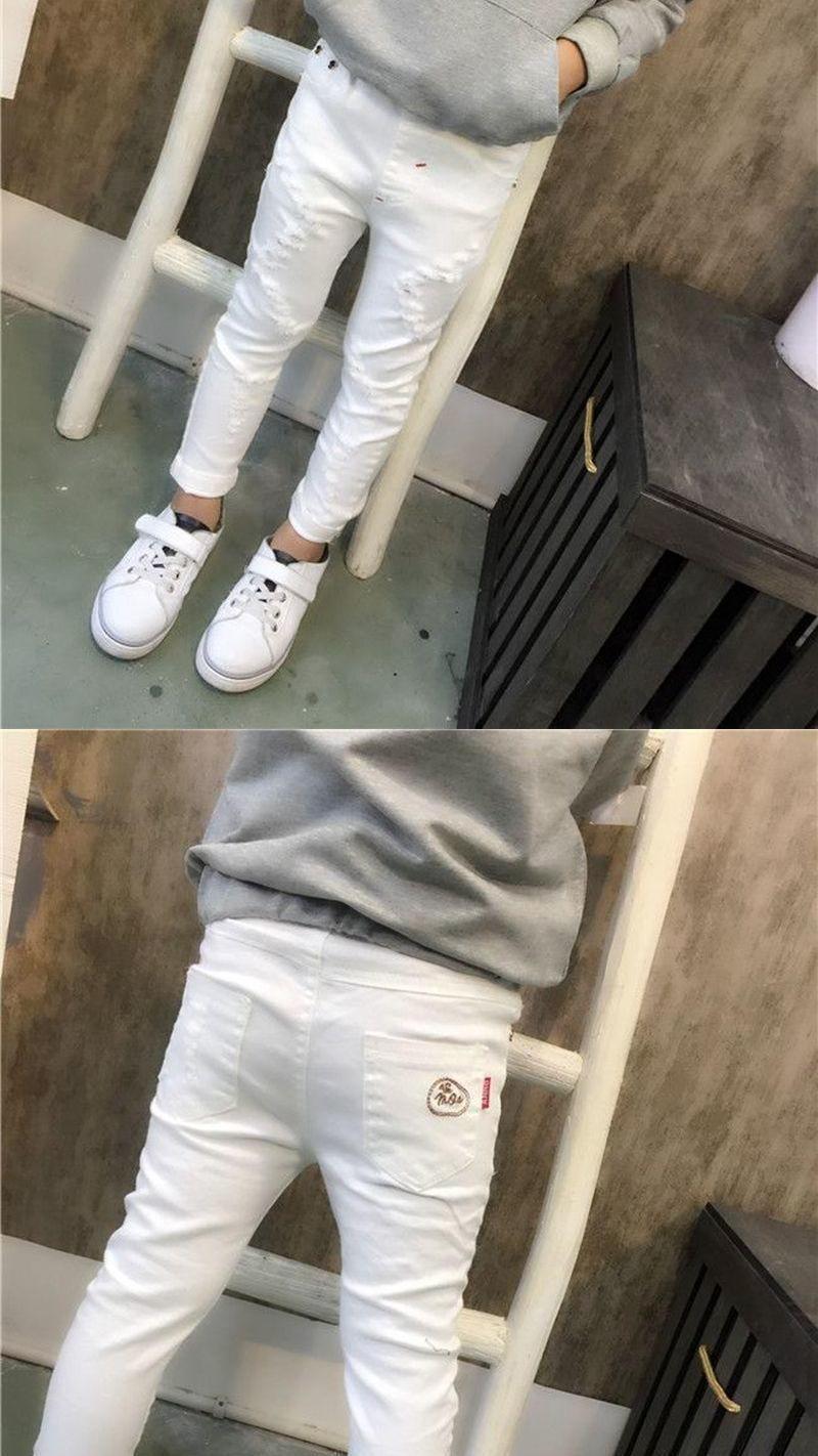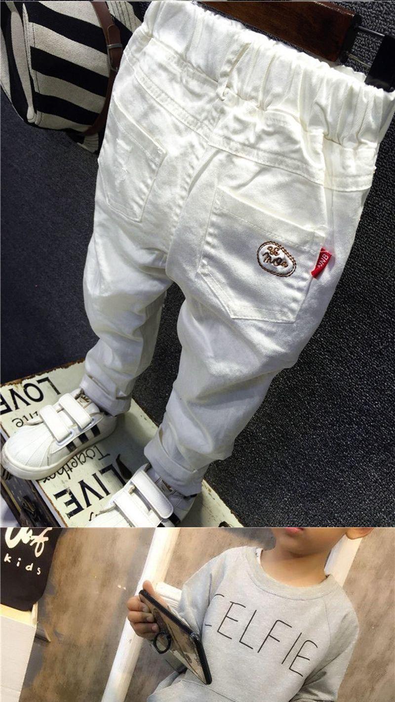 봄가을 바지 한국 스타일 남아용 얇은 면 흰색 신축성 슬림핏 바지 여아용 순백 슬림핏 스키니 팬츠스토어 가기
