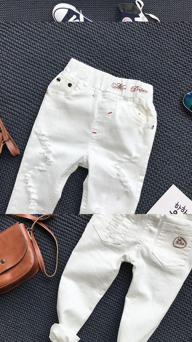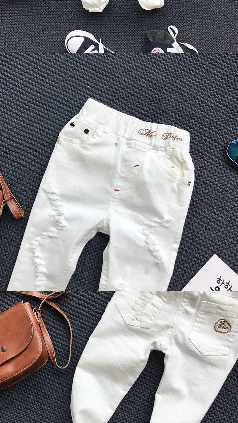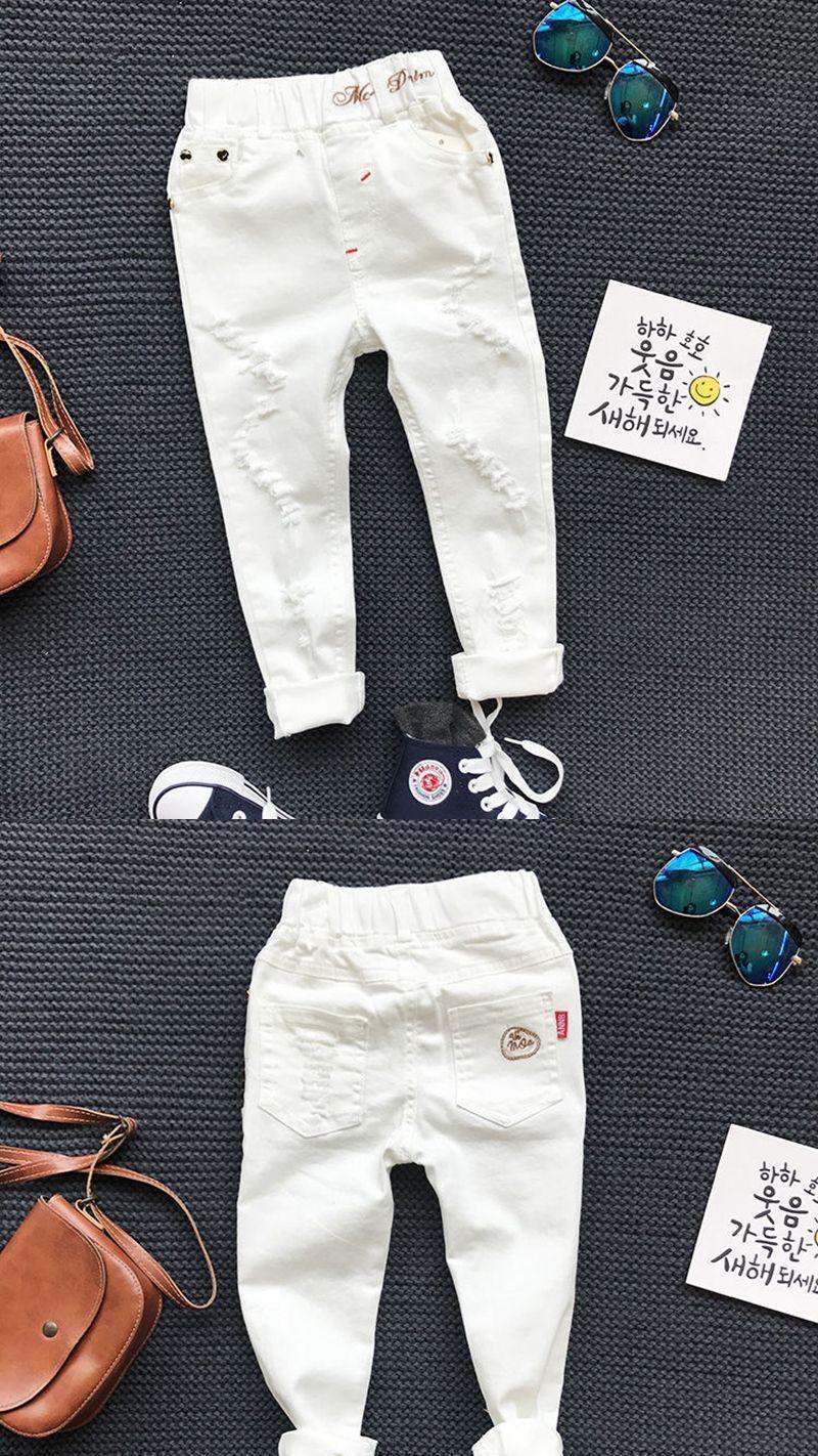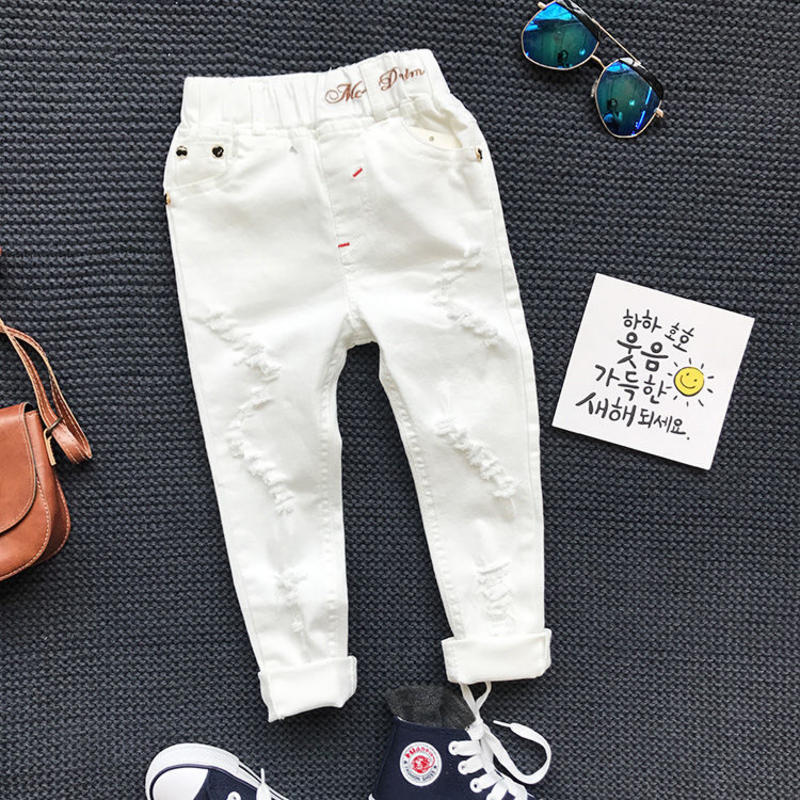 봄가을 바지 한국 스타일 남아용 얇은 면 흰색 신축성 슬림핏 바지 여아용 순백 슬림핏 스키니 팬츠스토어 가기