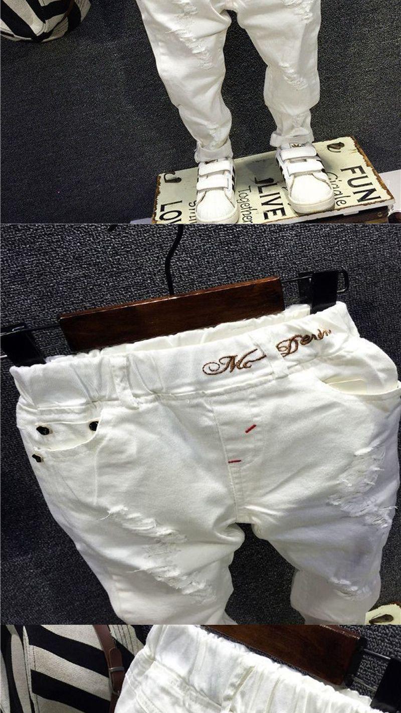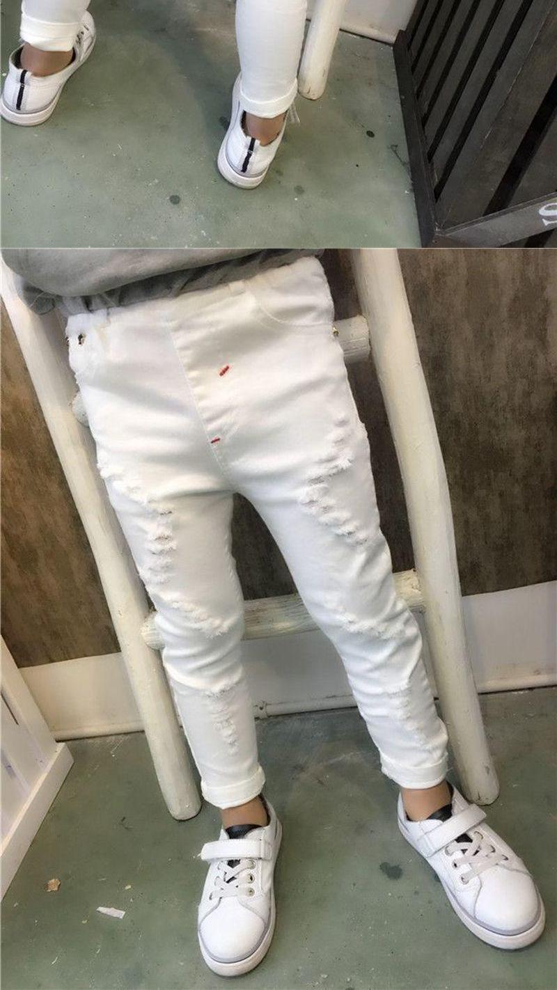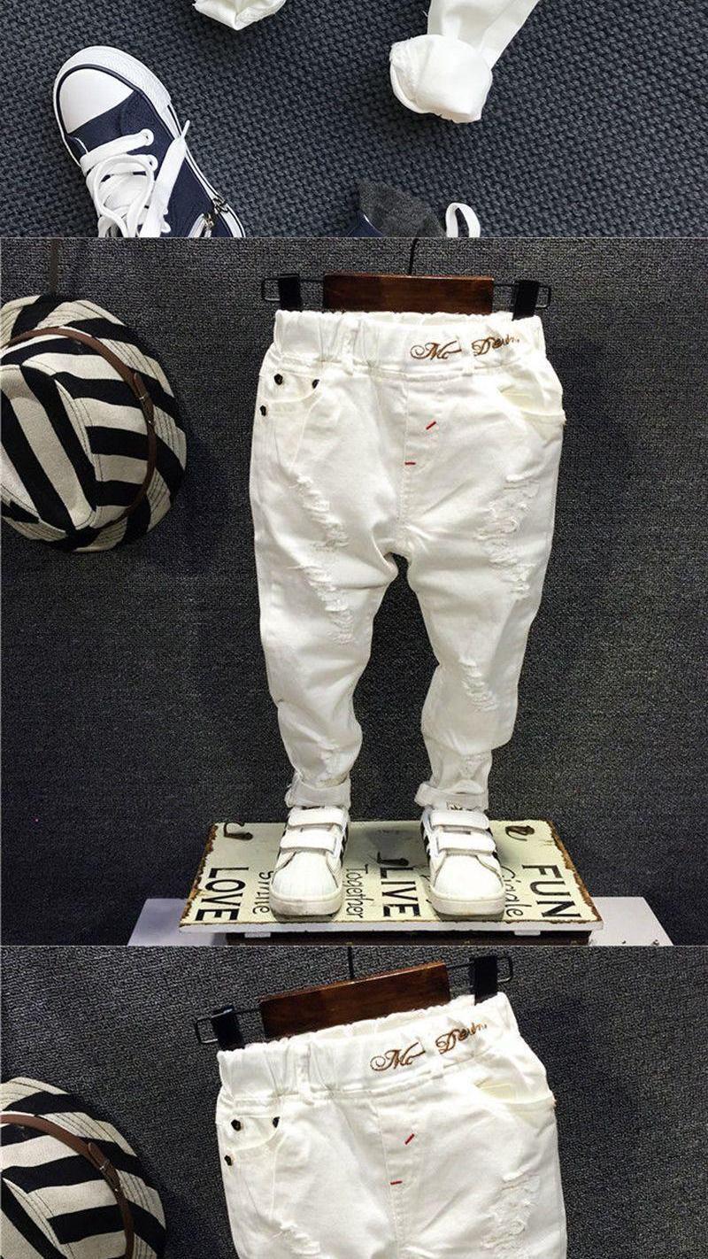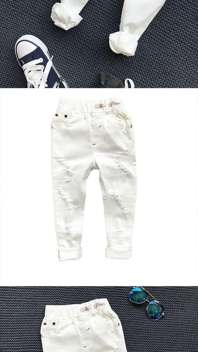 봄가을 바지 한국 스타일 남아용 얇은 면 흰색 신축성 슬림핏 바지 여아용 순백 슬림핏 스키니 팬츠스토어 가기