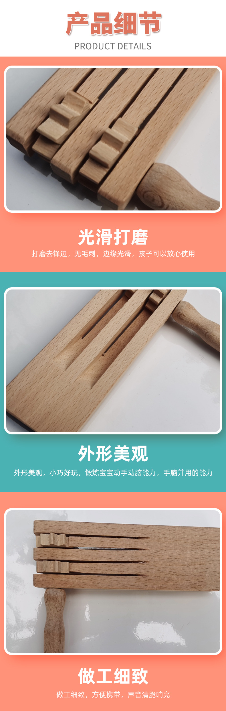 나무 회전 링 보드 quack 보드 15*15.5*5.5 더블 행 Orff 악기 조기 교육 지원 훈련 소품