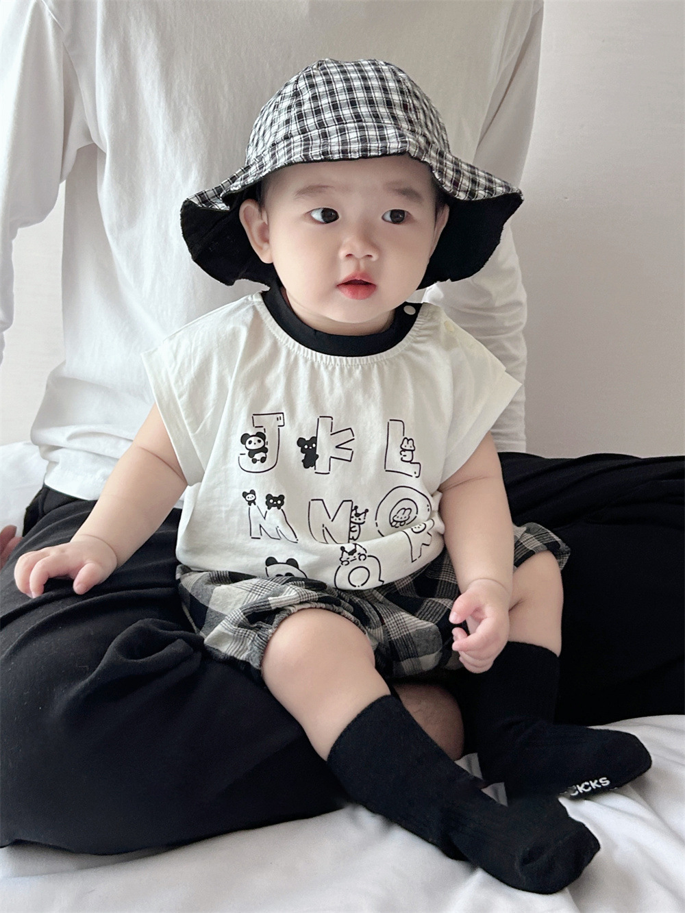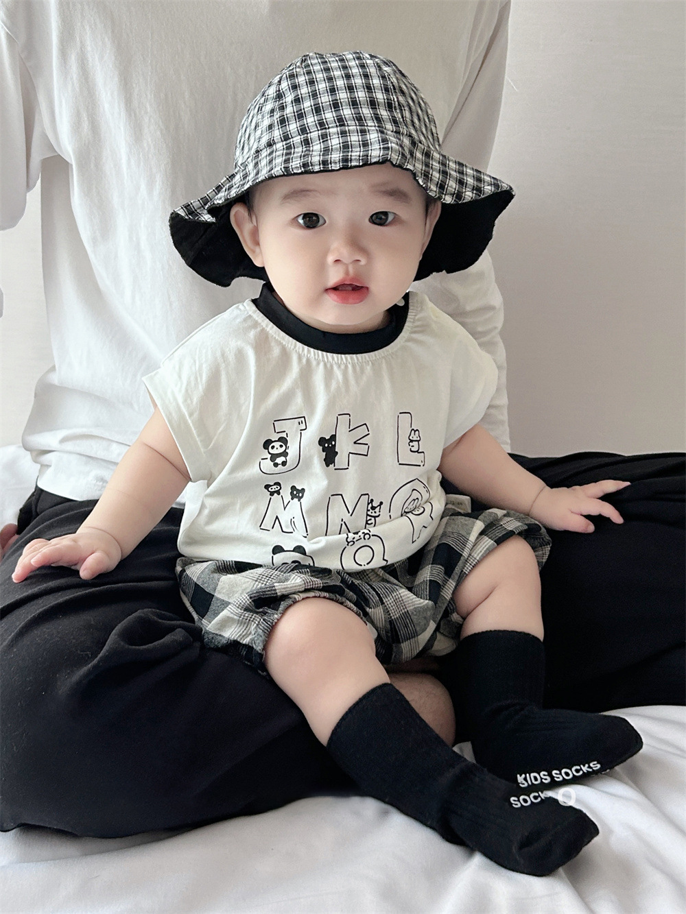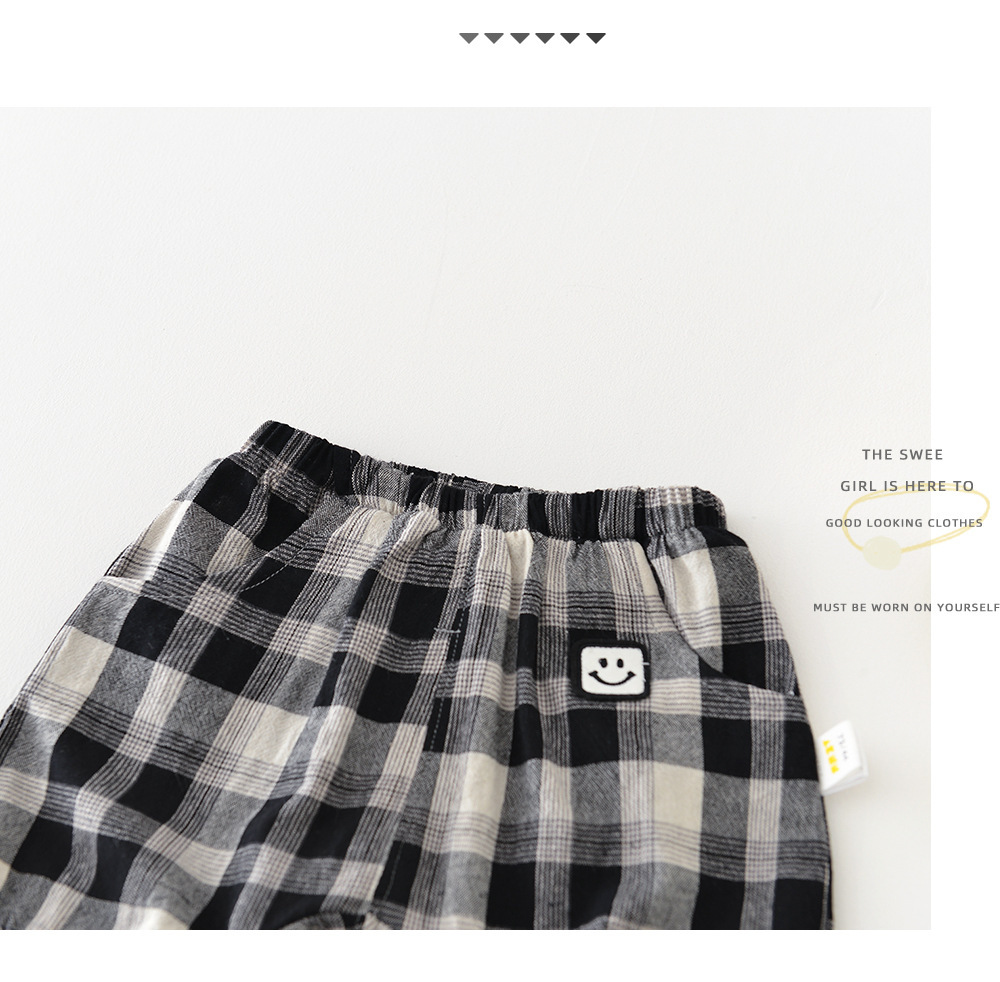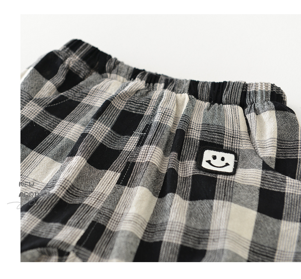 남아용 여름 티셔츠 투피스 세트, 멋진 남아 및 여아 의류, 레터 체크 무늬 반바지 세트, 면 아동용 반팔스토어 가기