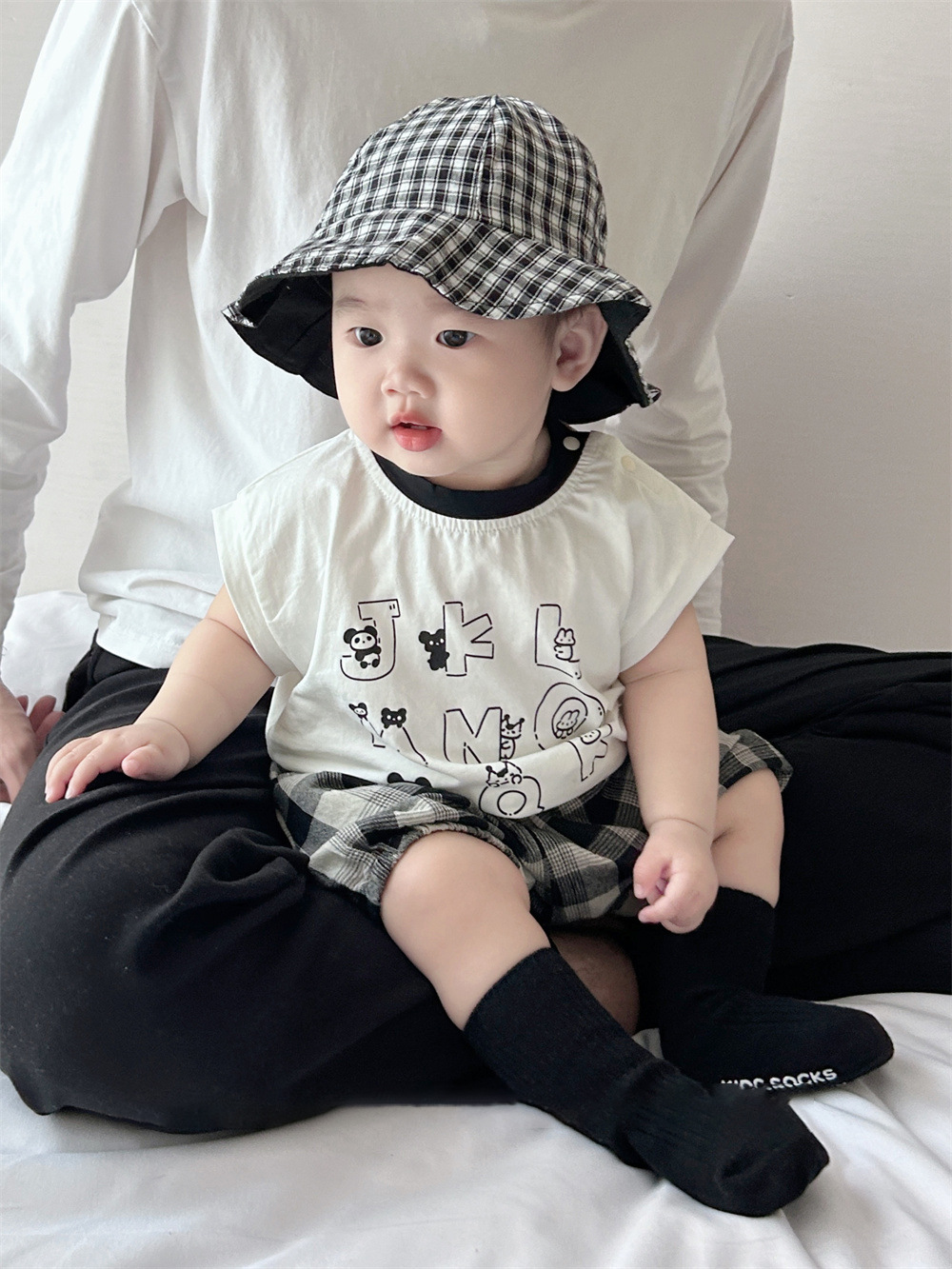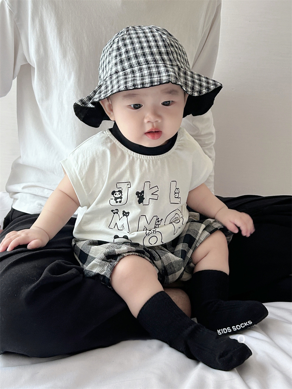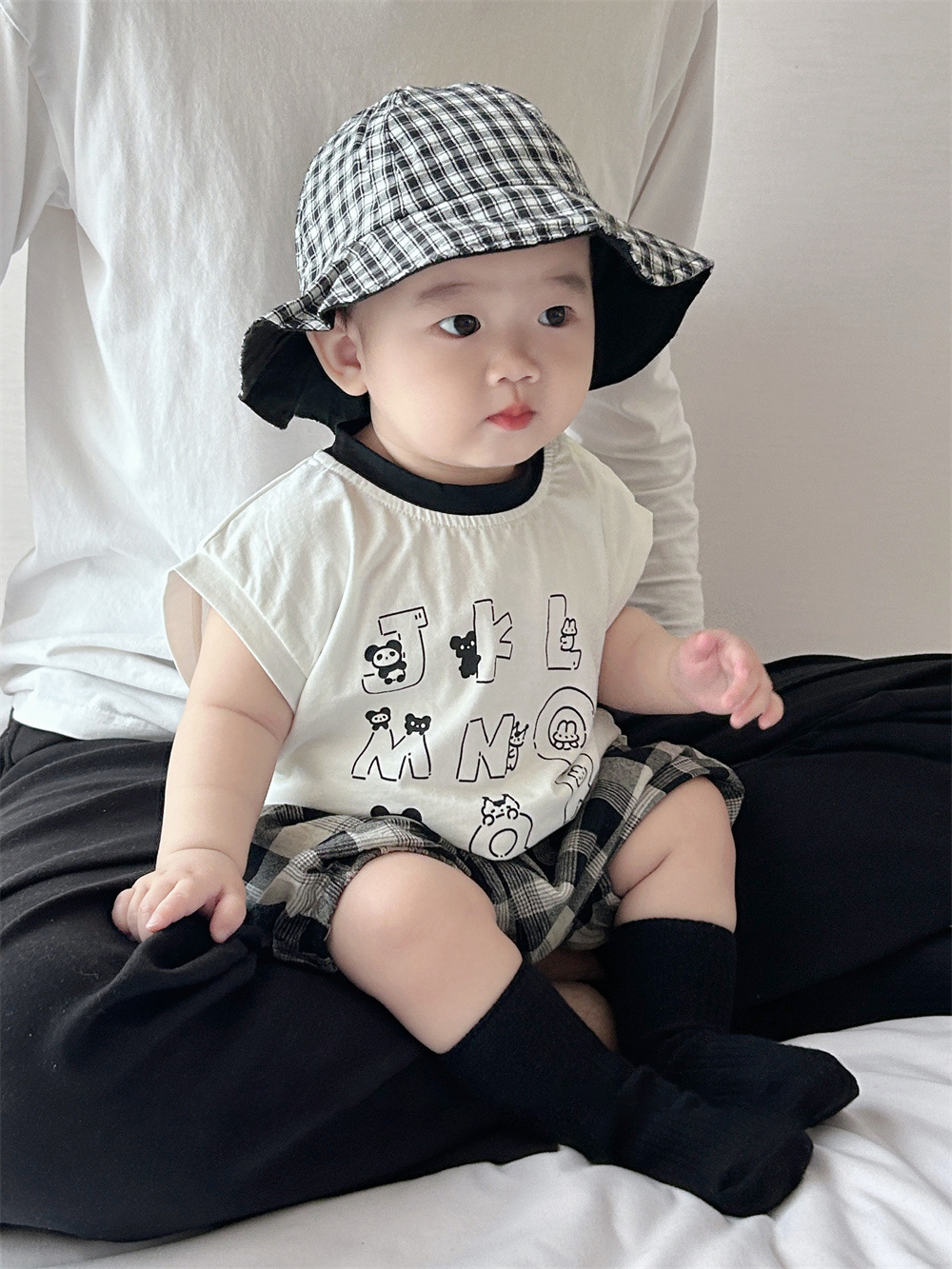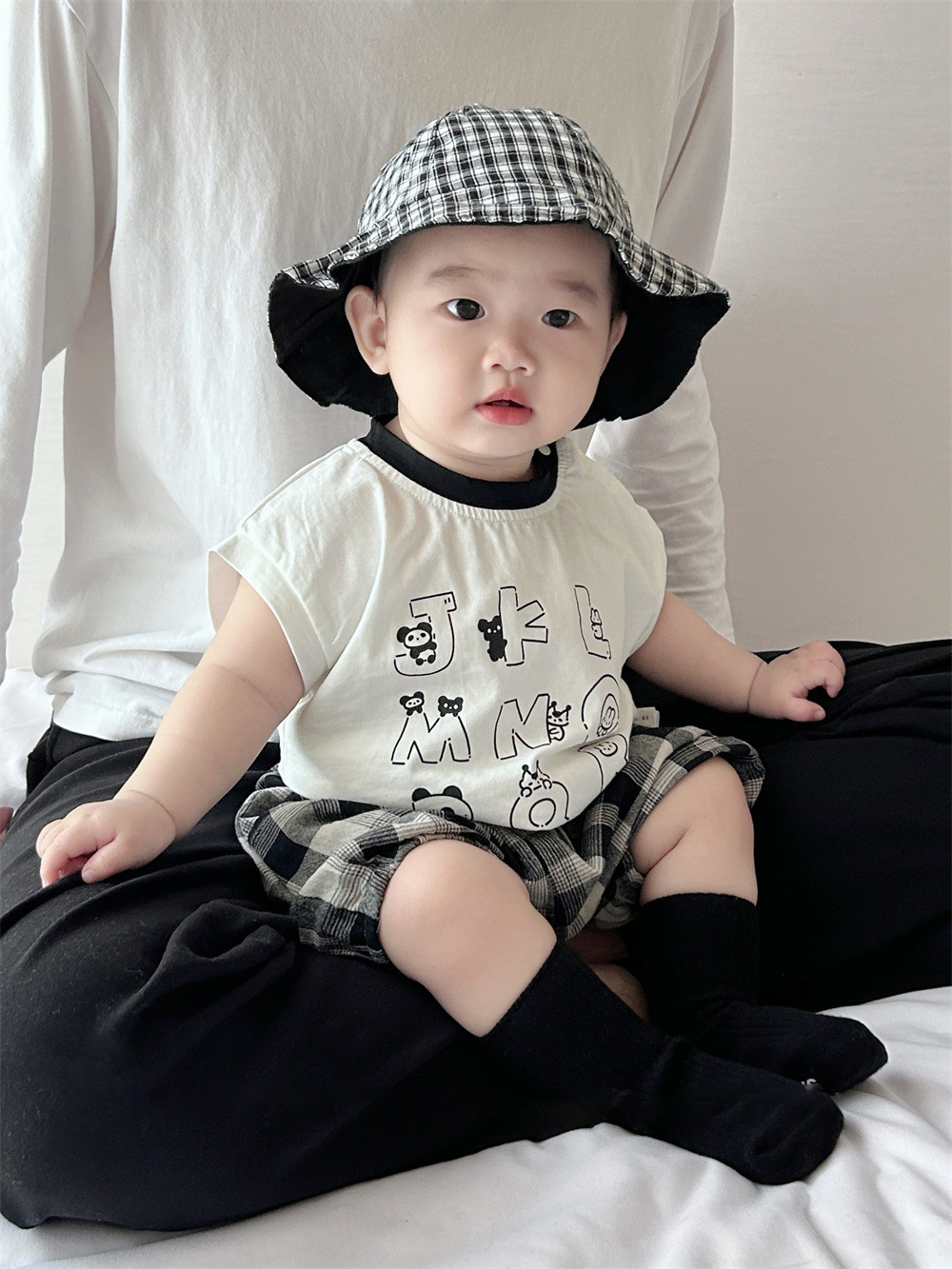 남아용 여름 티셔츠 투피스 세트, 멋진 남아 및 여아 의류, 레터 체크 무늬 반바지 세트, 면 아동용 반팔스토어 가기