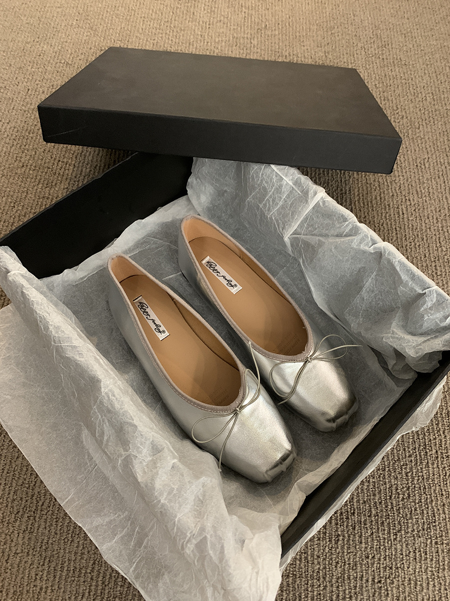 행복 한 느낌 플랫 발레 실버 신발 여성 신발 2024 활 빨간 보트 신발스토어 가기
