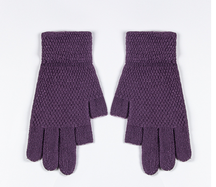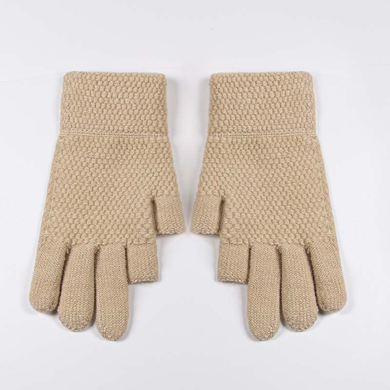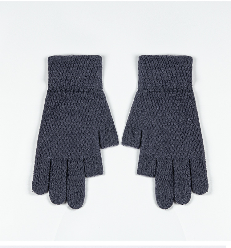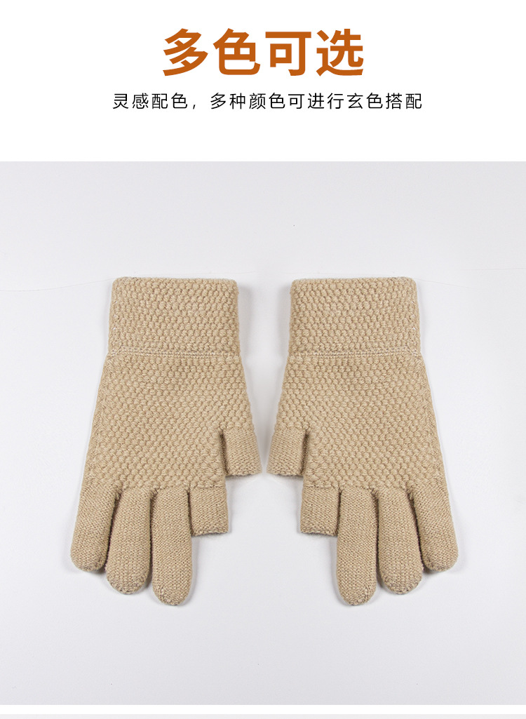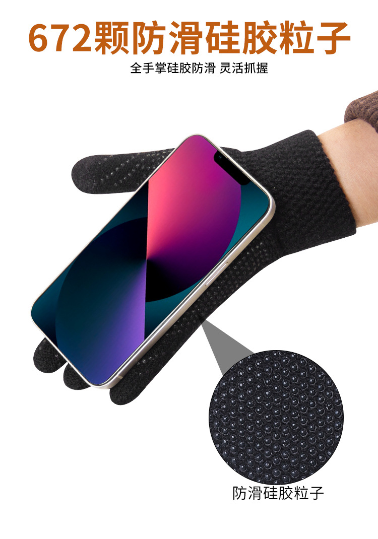 따뜻한 장갑 누설 두 손가락 터치 스크린 양모 두꺼운 실리콘 미끄럼 방지 사이클링 남자의 겨울 양털 냉장 야외 장갑