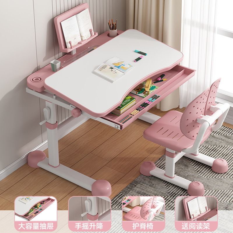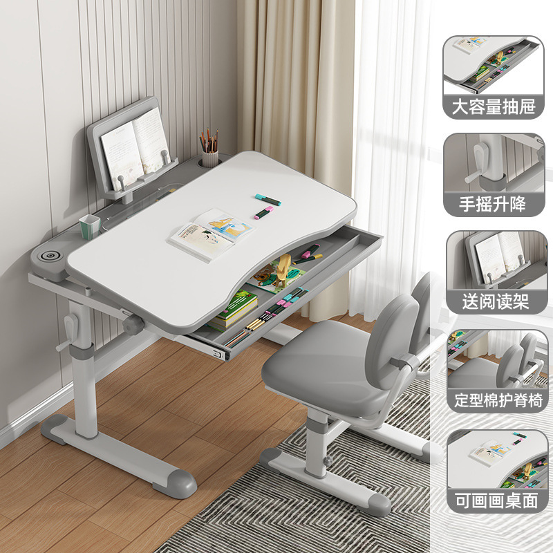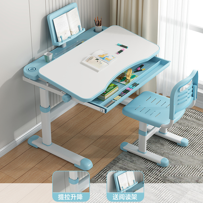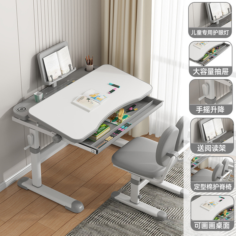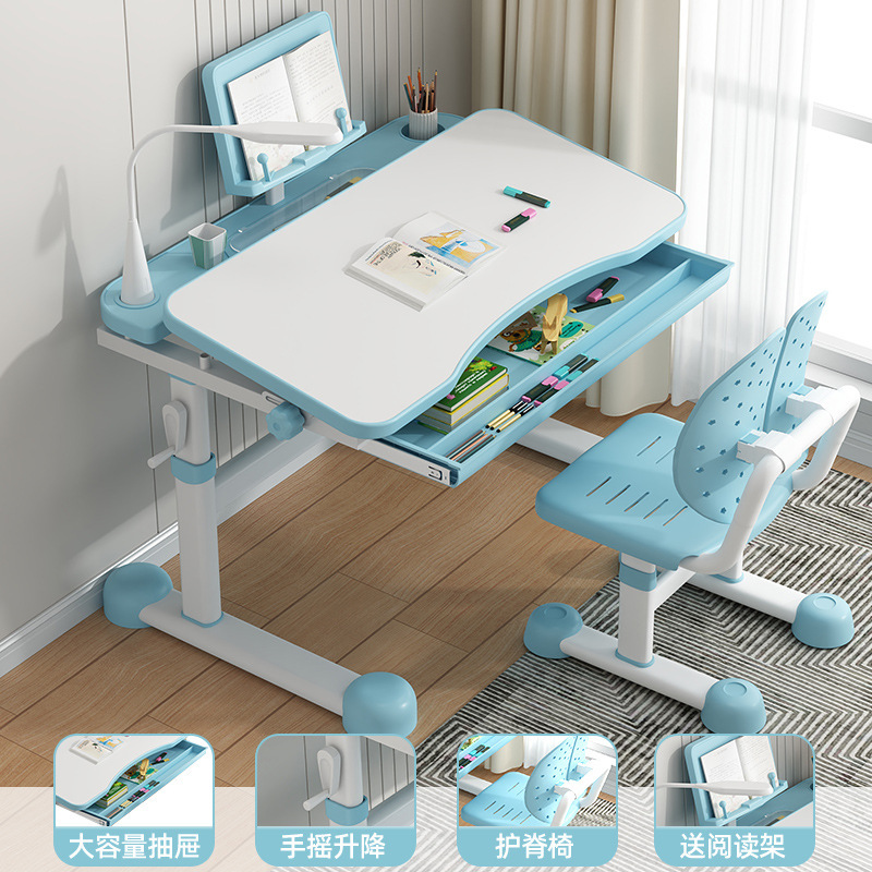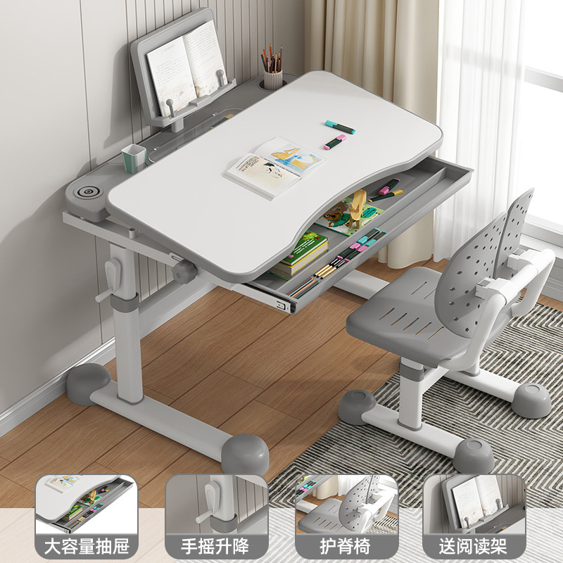공장 스터디 데스크와 의자를 올리고 내릴 수 있습니다 책상과 의자 숙제 의자 서재 책꽂이 초등 및 중등 학생을위한 통합 책상과 의자