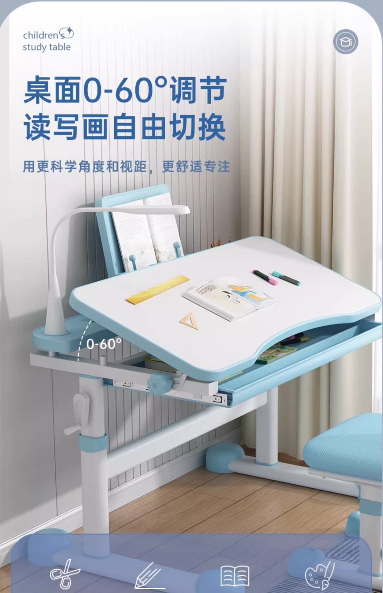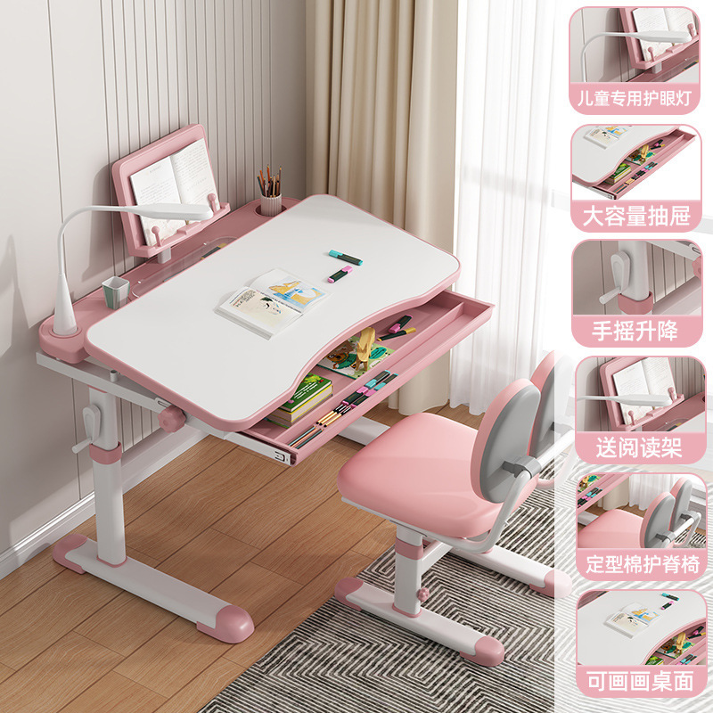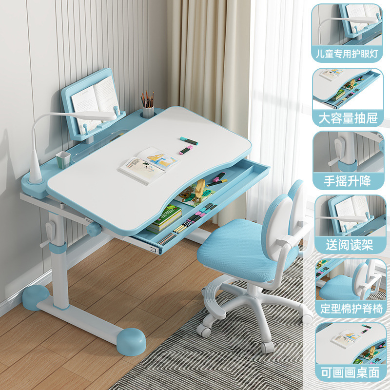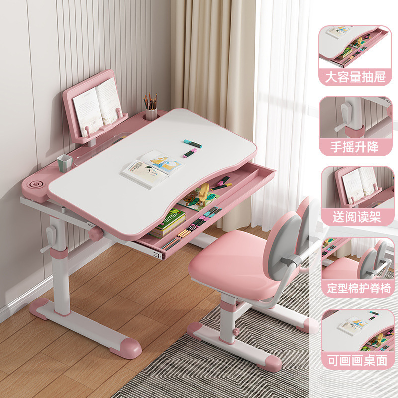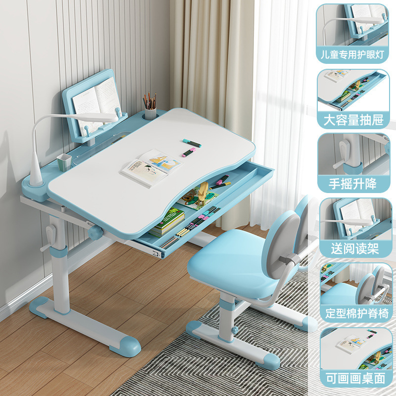 공장 스터디 데스크와 의자를 올리고 내릴 수 있습니다 책상과 의자 숙제 의자 서재 책꽂이 초등 및 중등 학생을위한 통합 책상과 의자