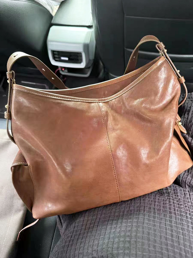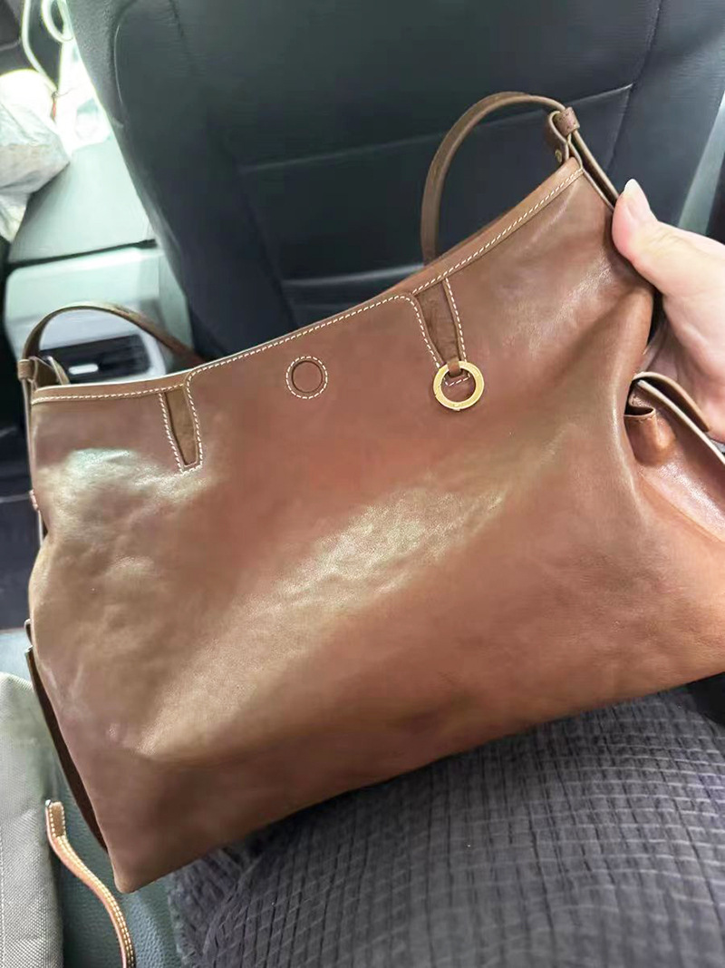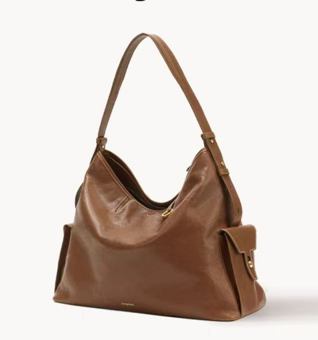 송 덴지 가죽 호보 숄더백 세로형 보트형 소프트백