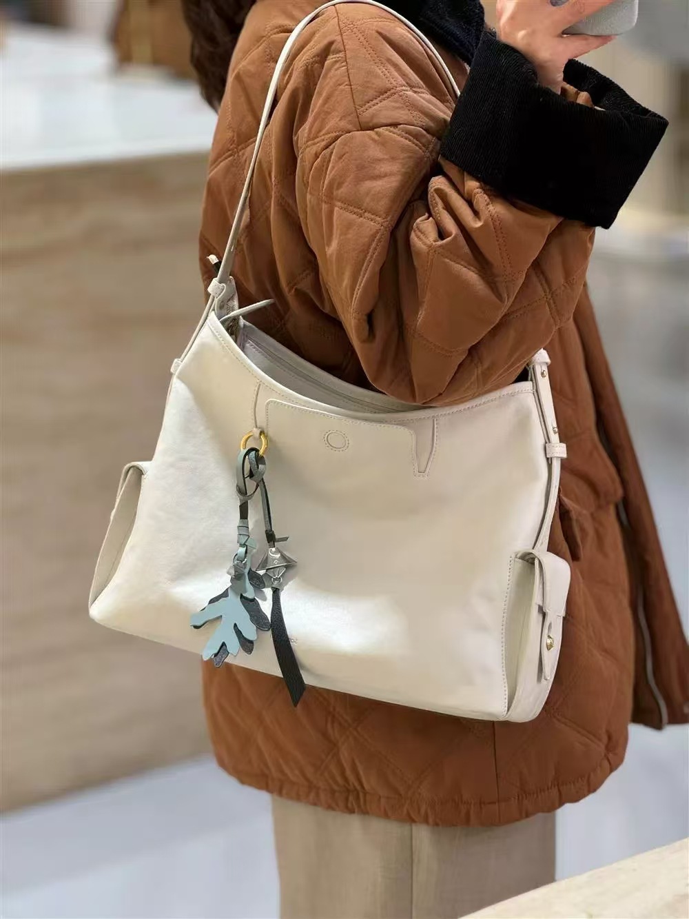 송 덴지 가죽 호보 숄더백 세로형 보트형 소프트백스토어 가기