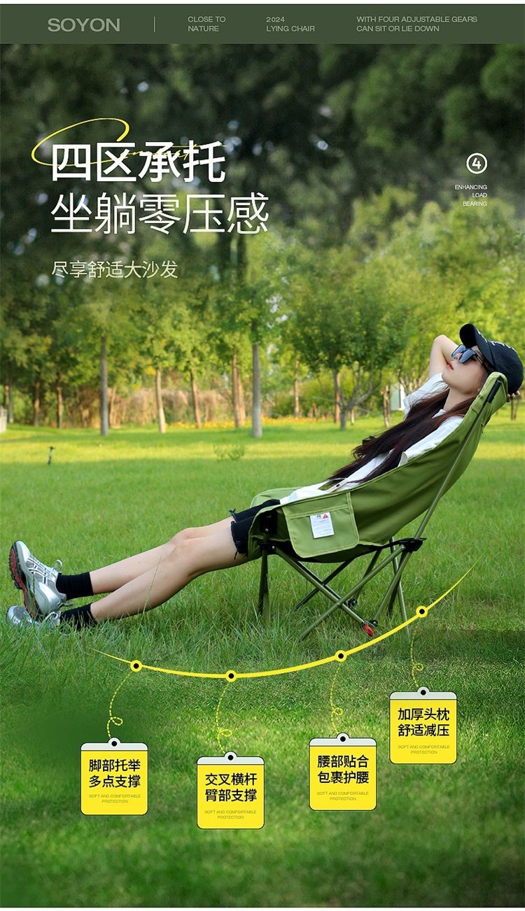 문 의자 야외 접이식 의자 3 기어 조정 가능한 높은 등받이 문 의자 해변 의자 휴대용 피크닉 의자 캠핑 의자스토어 가기