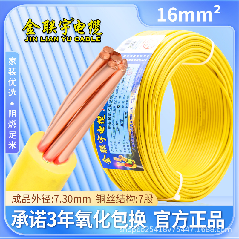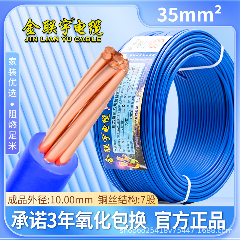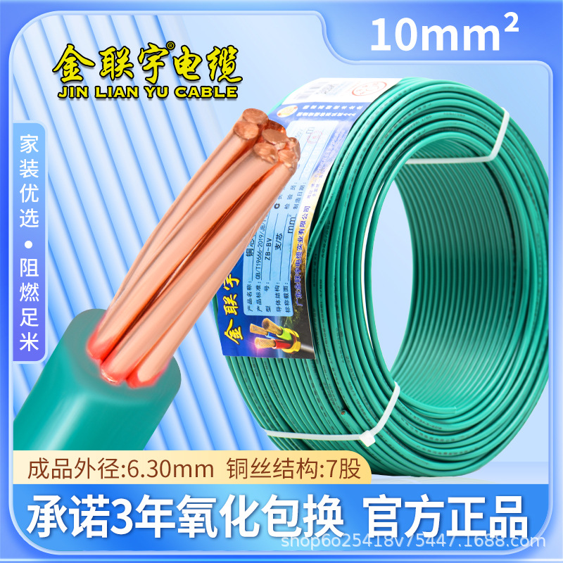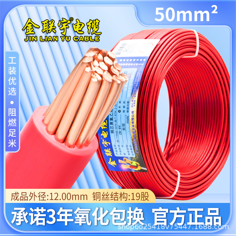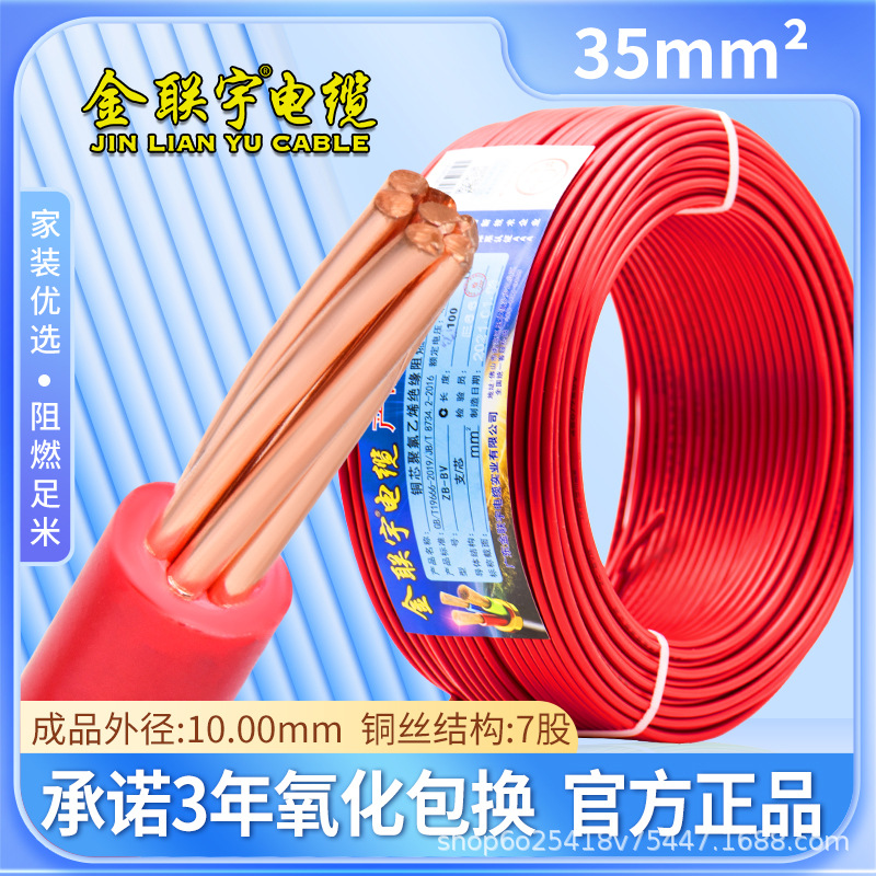 진 롄유 케이블 국가 표준 BV10 16 25 35 50 평방 구리 코어 단일 플라스틱 가정용 하드 와이어 난연성 와이어