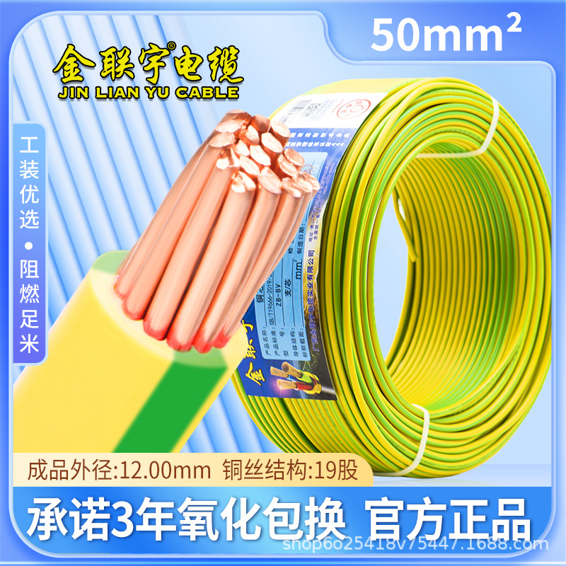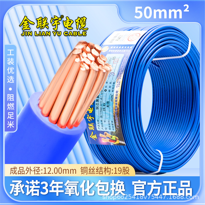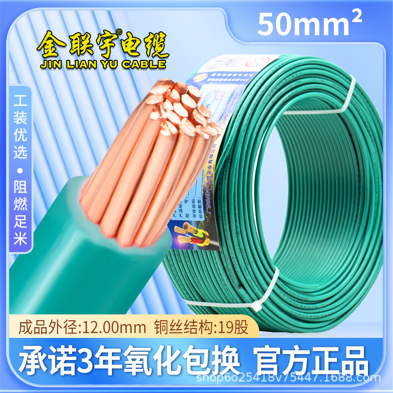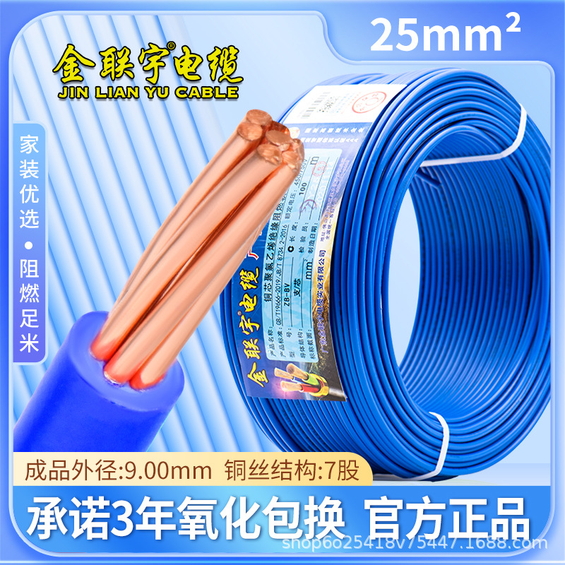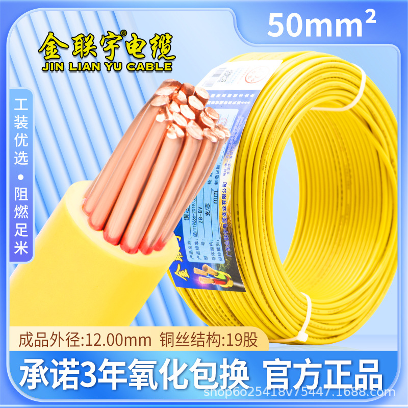 진 롄유 케이블 국가 표준 BV10 16 25 35 50 평방 구리 코어 단일 플라스틱 가정용 하드 와이어 난연성 와이어