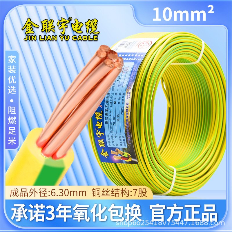 진 롄유 케이블 국가 표준 BV10 16 25 35 50 평방 구리 코어 단일 플라스틱 가정용 하드 와이어 난연성 와이어스토어 가기