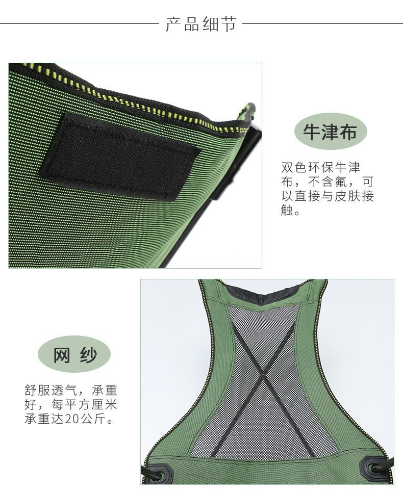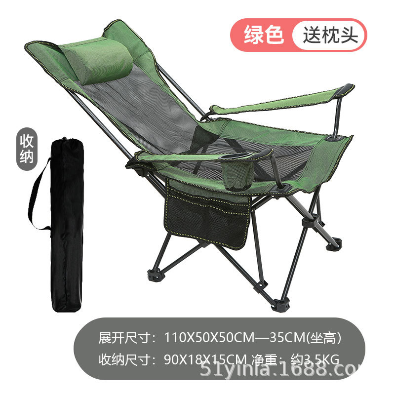 • 긴 등받이, 무단계 조절 가능, 녹색 메쉬, 무료 가방 + 베개