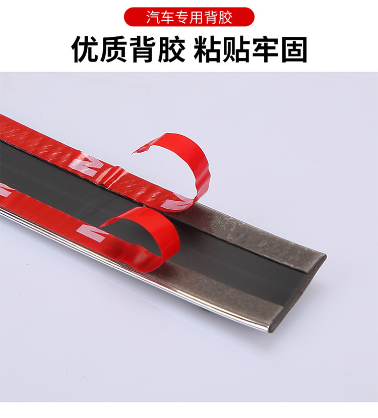 2、撕开亮条背面护膜后,小心贴好,然后减去多余的。