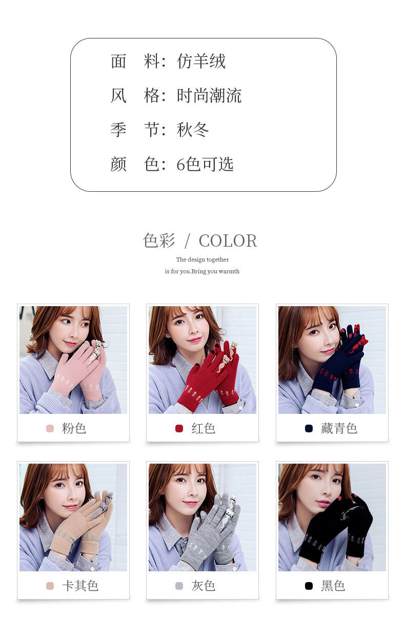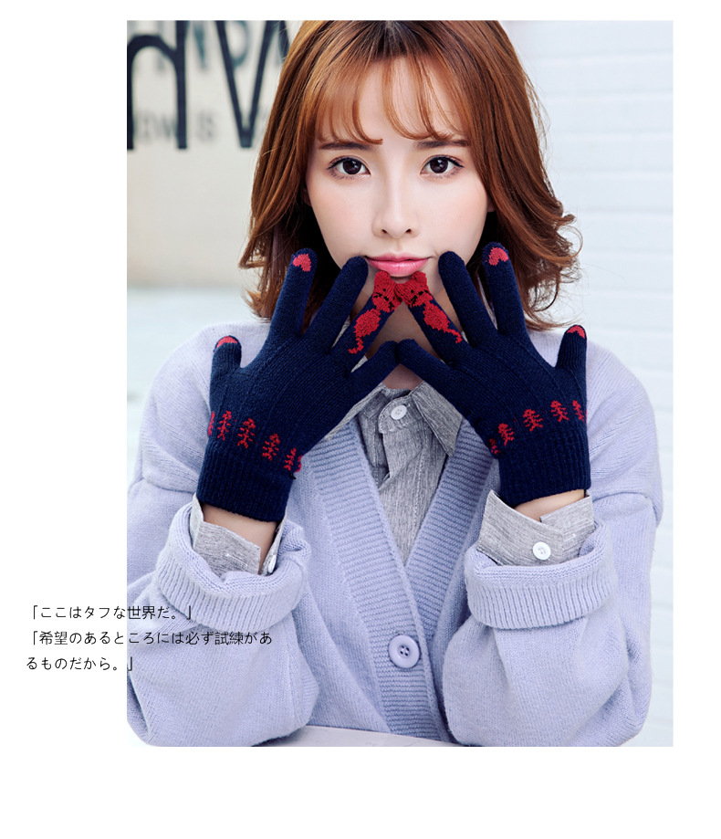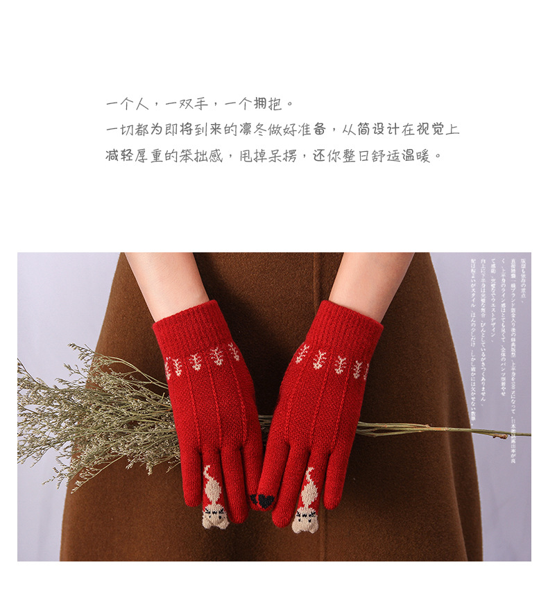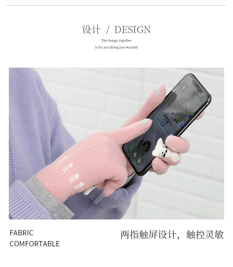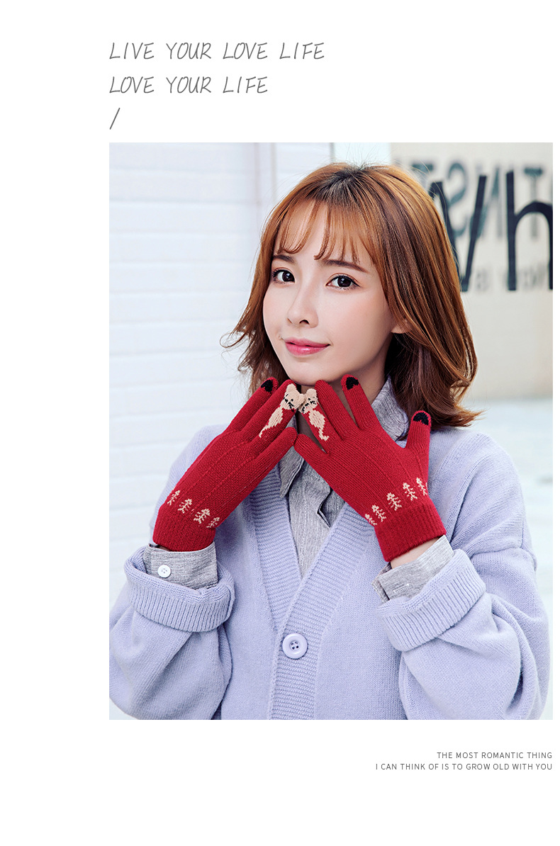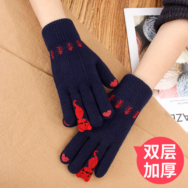 양모 장갑 겨울 귀여운 고양이 만화 터치 스크린 따뜻한 니트 5 손가락 두꺼운 야외 방한 사이클링 장갑