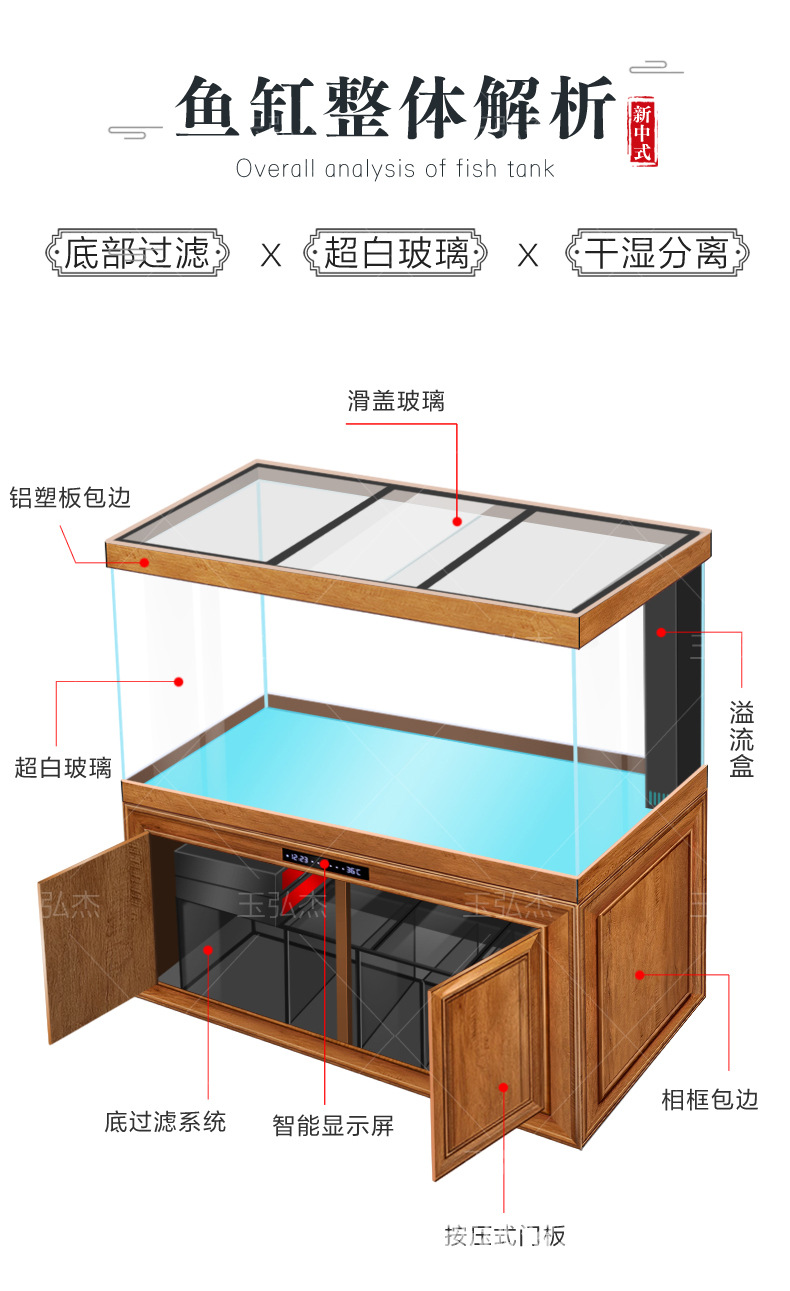 [공장 아울렛] 중국 용 어항 슈퍼 화이트 유리 바닥 필터 어항 거실 벽 중대형 생태 어항스토어 가기