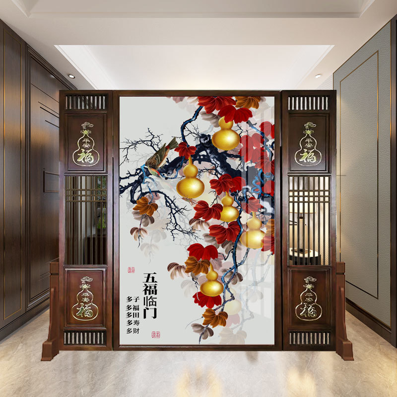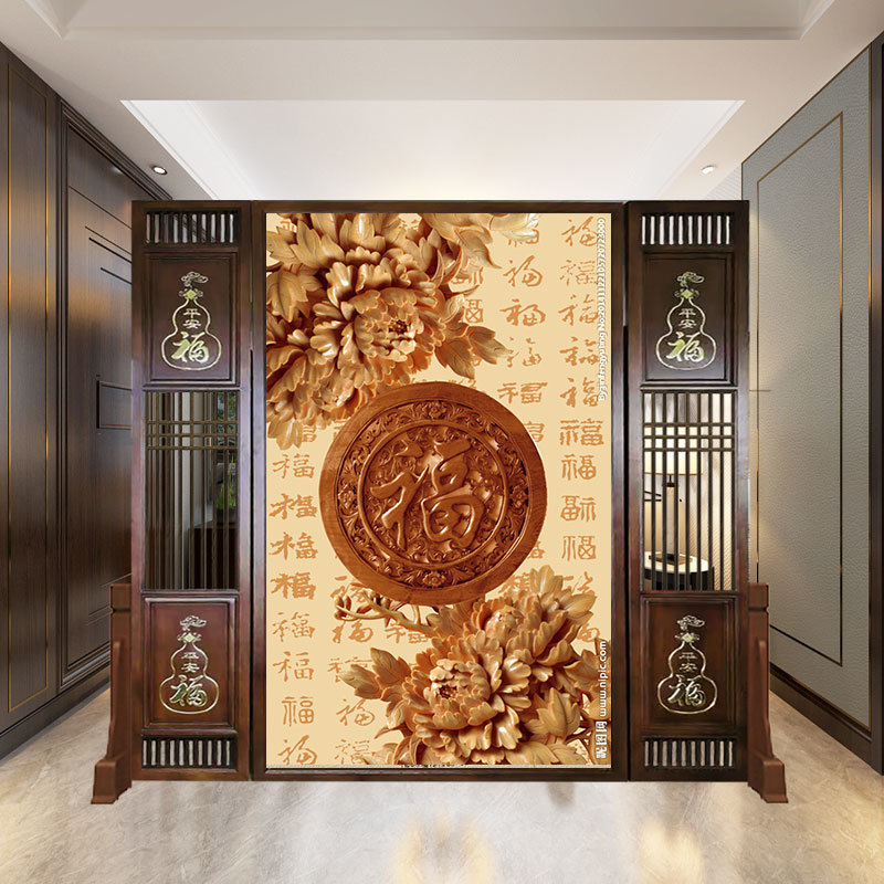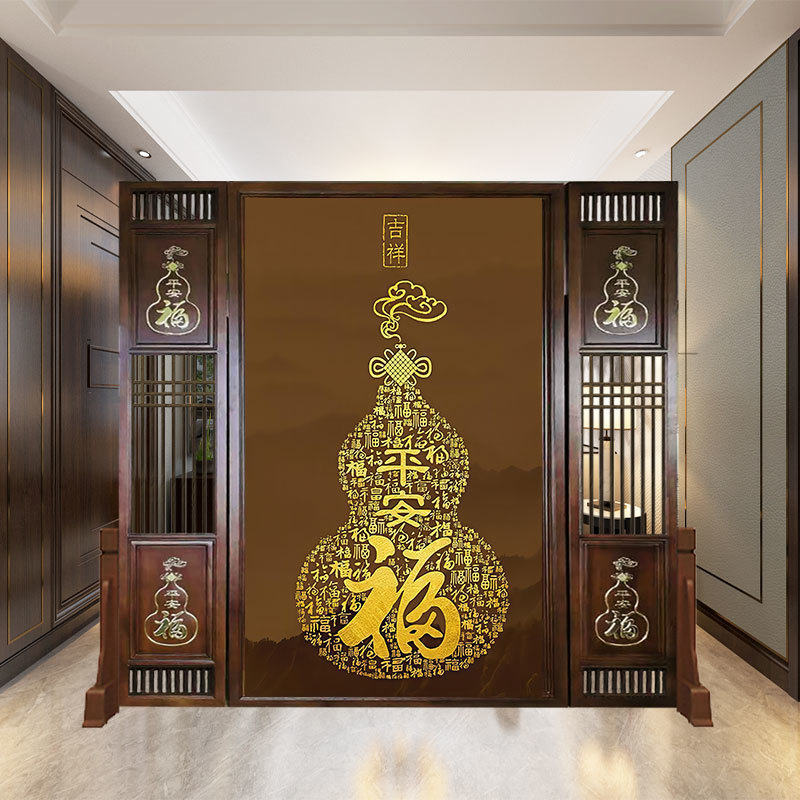 새로운 중국 스타일 거실 입구 간단한 나무 조각 대피소 스크린 파티션 복도 솔리드 우드 홀 양면 화장실