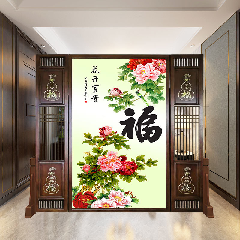 새로운 중국 스타일 거실 입구 간단한 나무 조각 대피소 스크린 파티션 복도 솔리드 우드 홀 양면 화장실스토어 가기