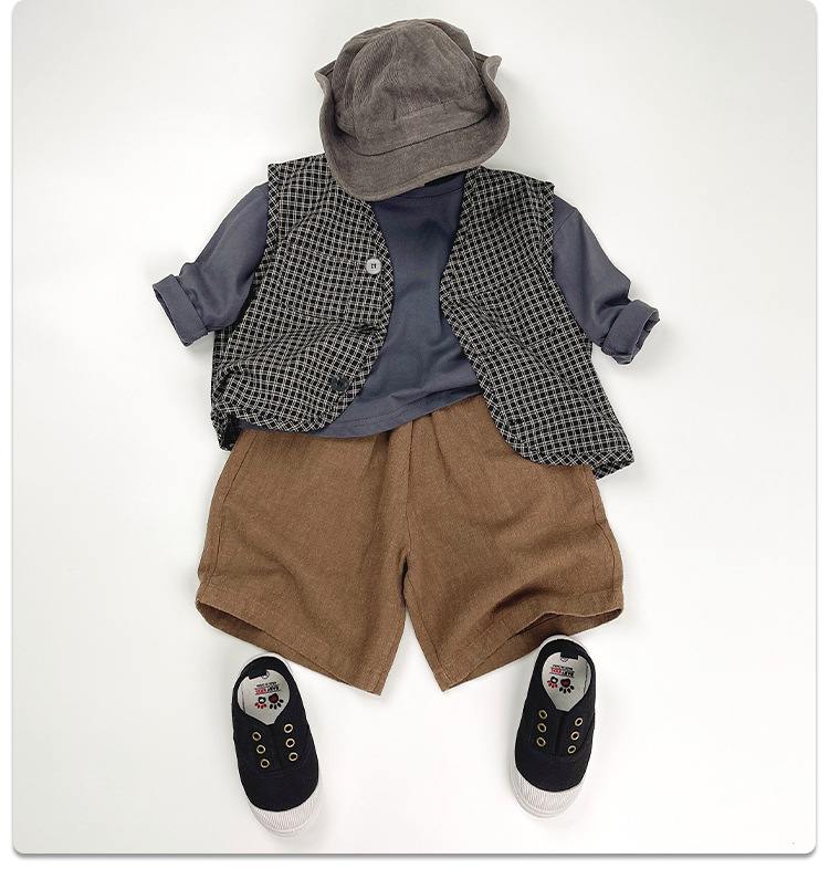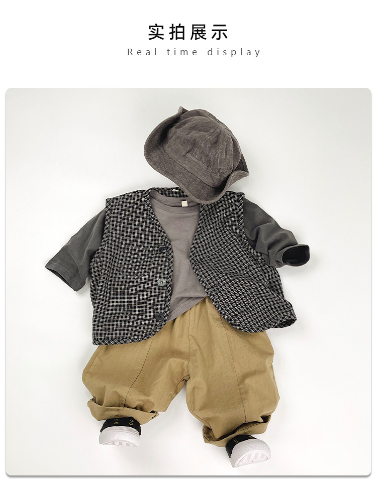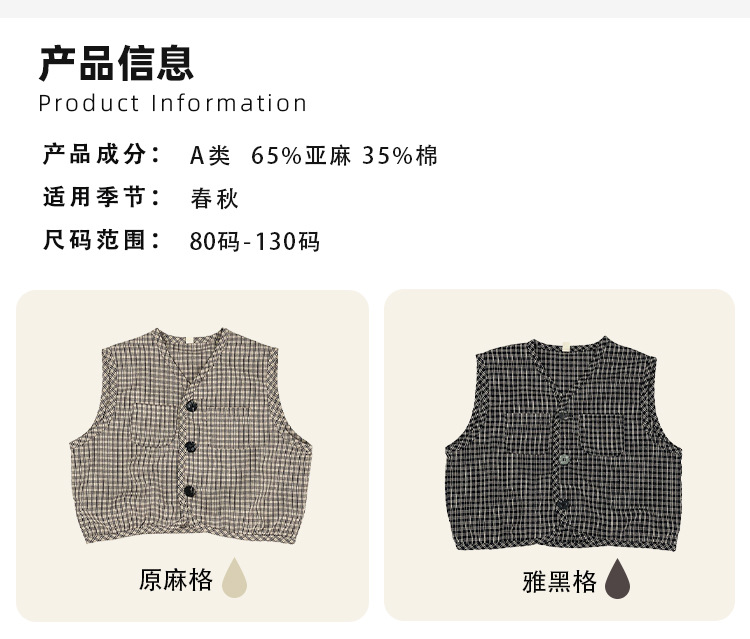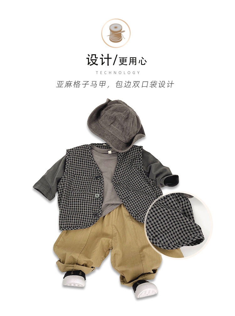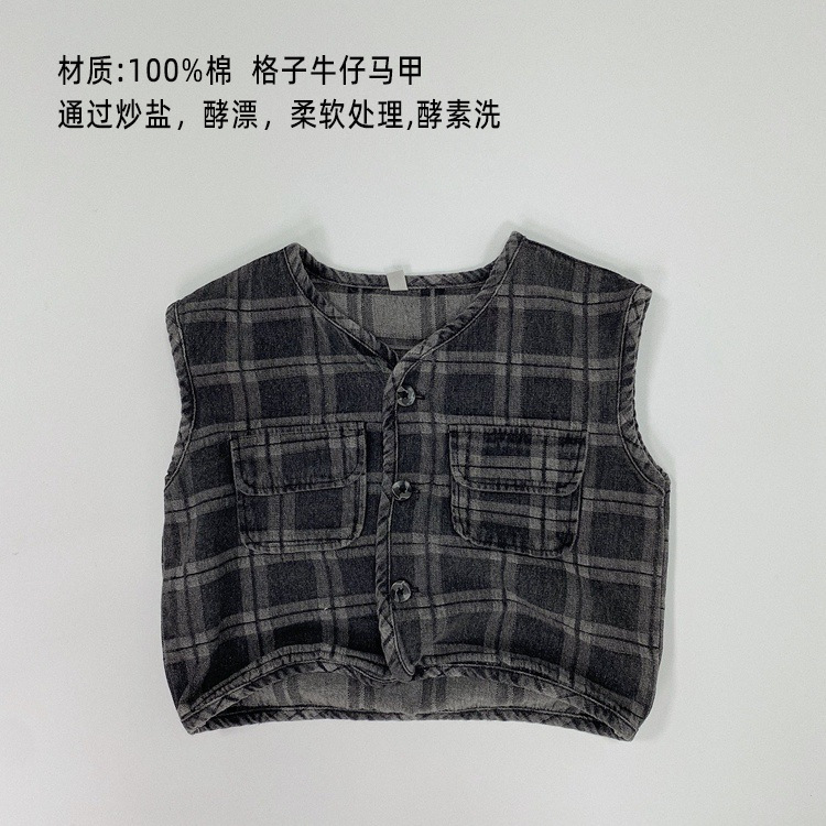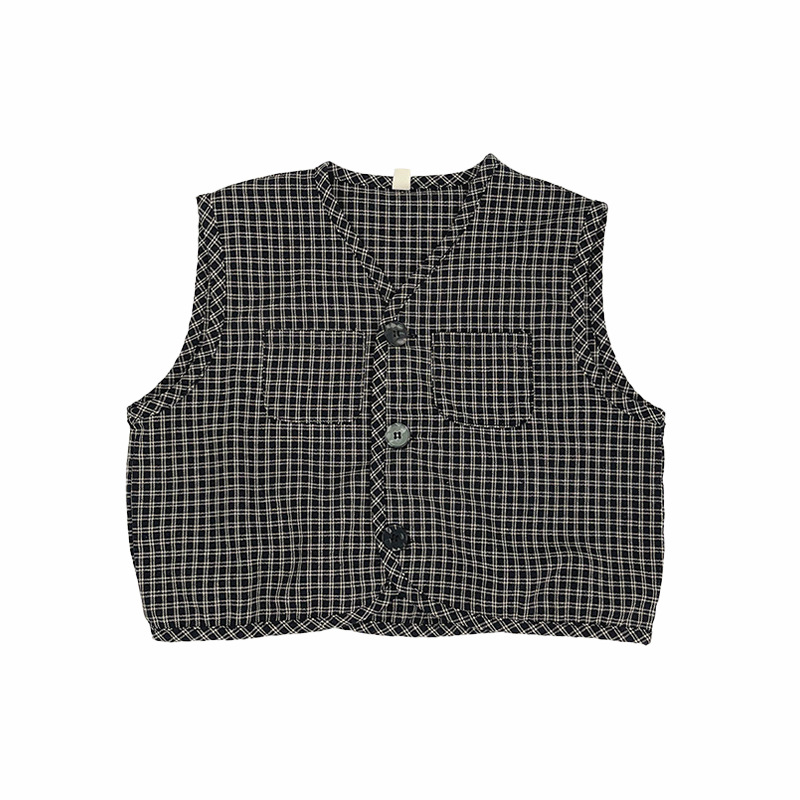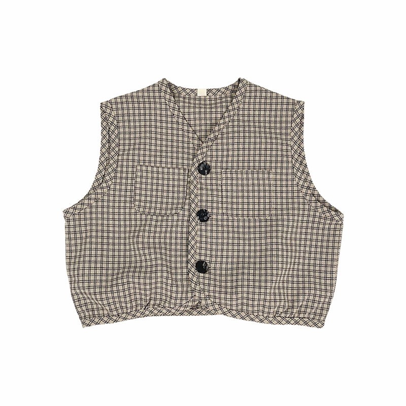 맞춤형 가공 ~ 아동 격자 무늬 조끼 봄, 가을 새로운 한국 스타일 린넨 베이비 싱글 브레스트 소년 소녀 의류스토어 가기