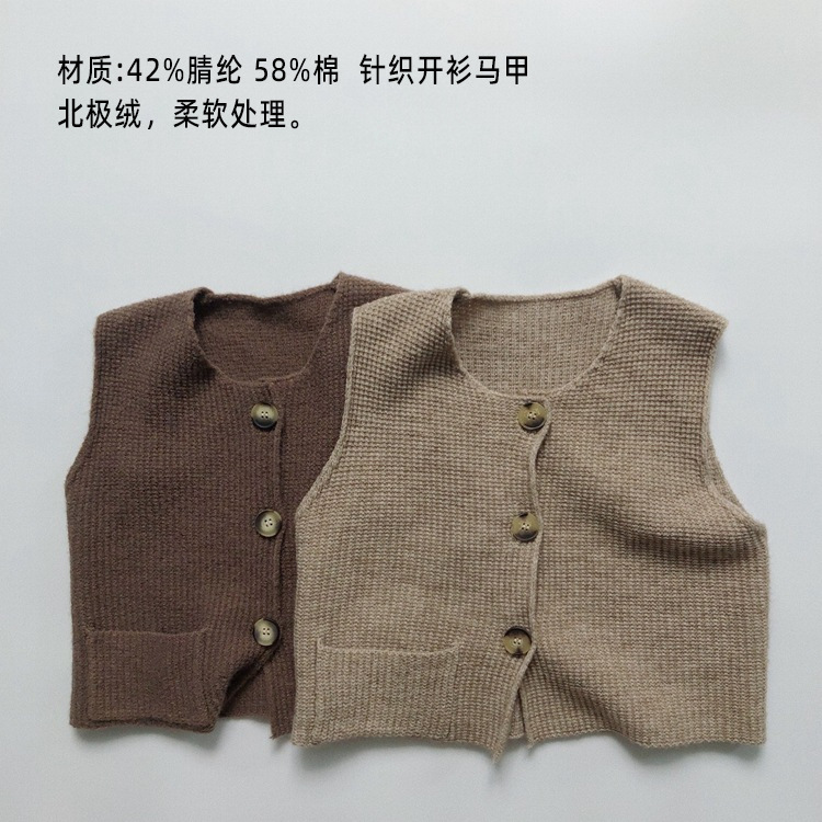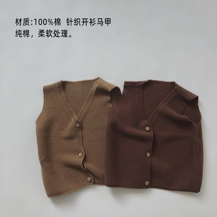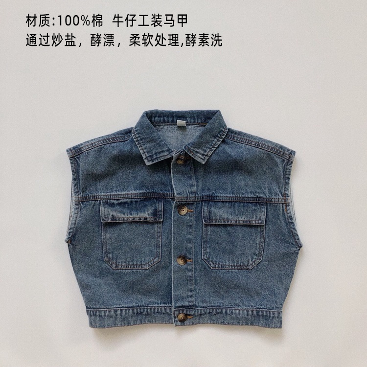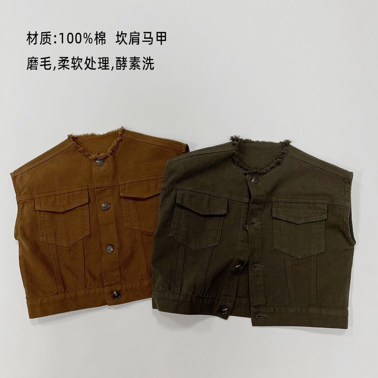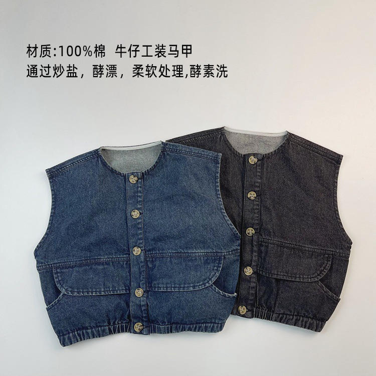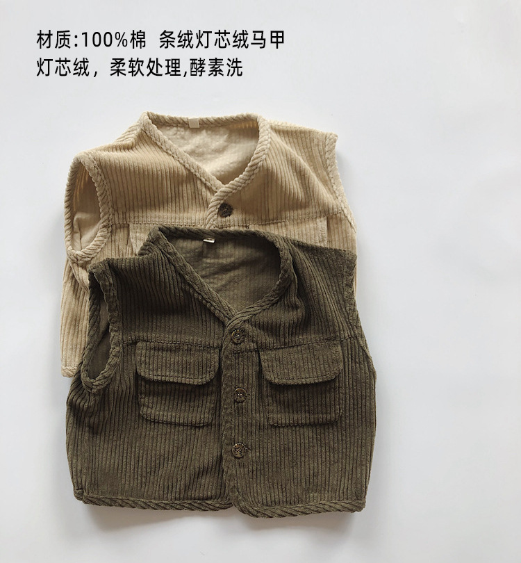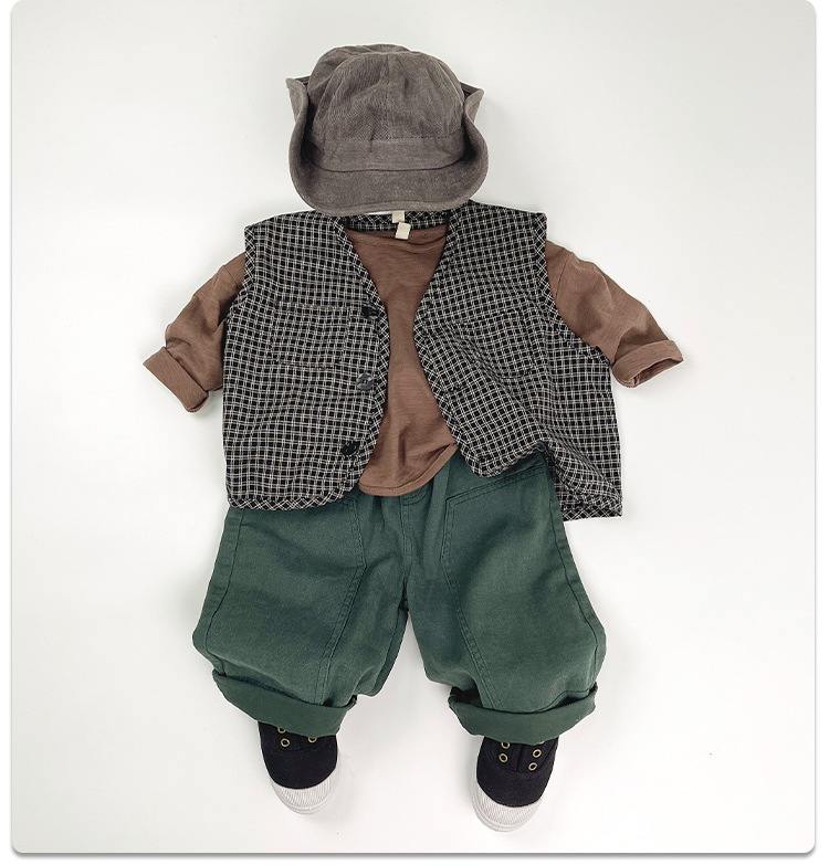 맞춤형 가공 ~ 아동 격자 무늬 조끼 봄, 가을 새로운 한국 스타일 린넨 베이비 싱글 브레스트 소년 소녀 의류스토어 가기