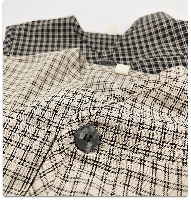 맞춤형 가공 ~ 아동 격자 무늬 조끼 봄, 가을 새로운 한국 스타일 린넨 베이비 싱글 브레스트 소년 소녀 의류