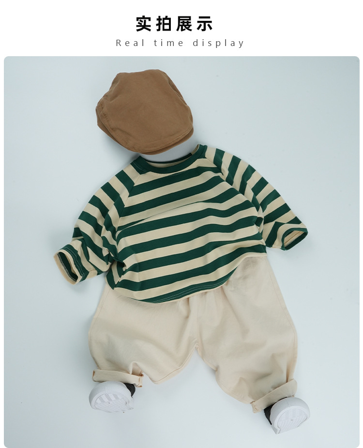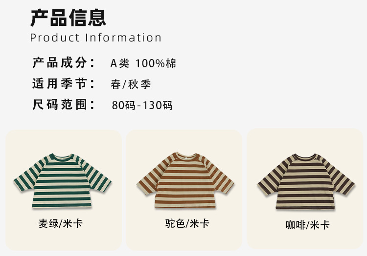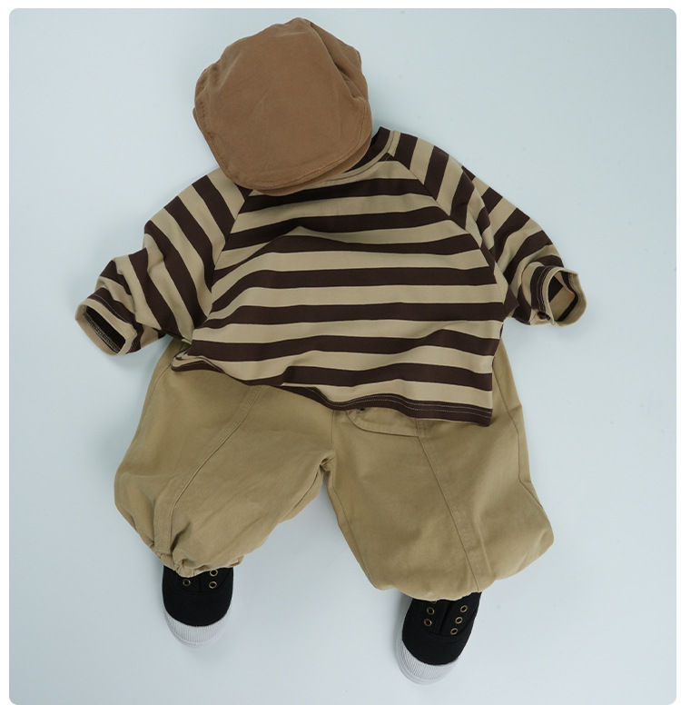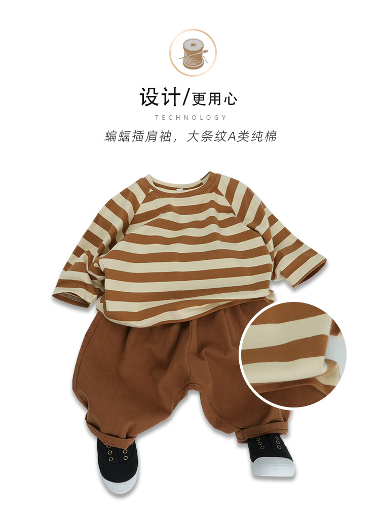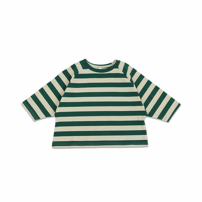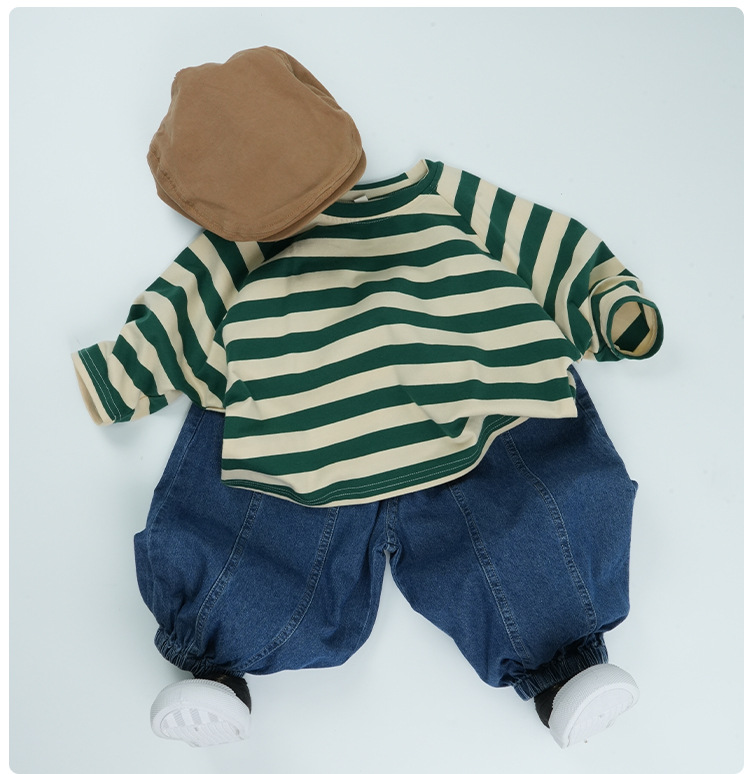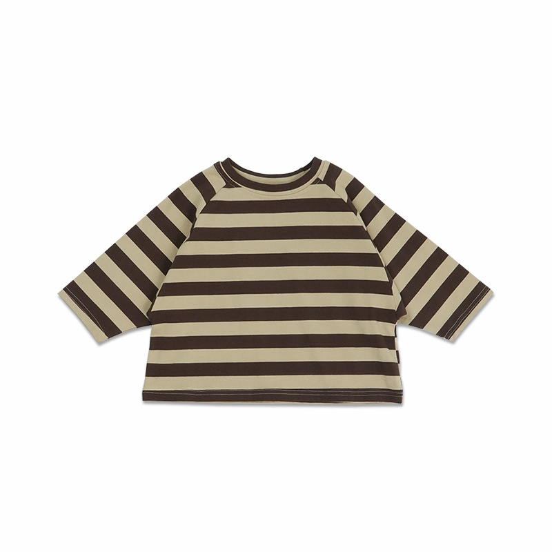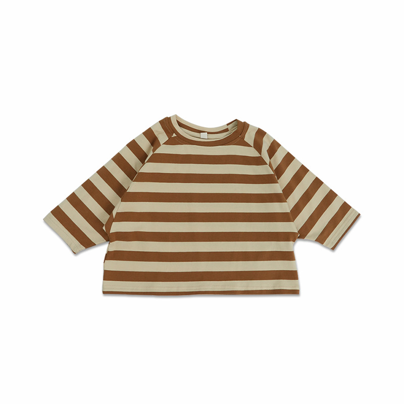 어린이 줄무늬 긴팔 티셔츠 한국식 일본식 봄과 가을 방망이 소매 라글란 소매 크루 넥베이스 셔츠 소년 소녀를위한 트렌디스토어 가기